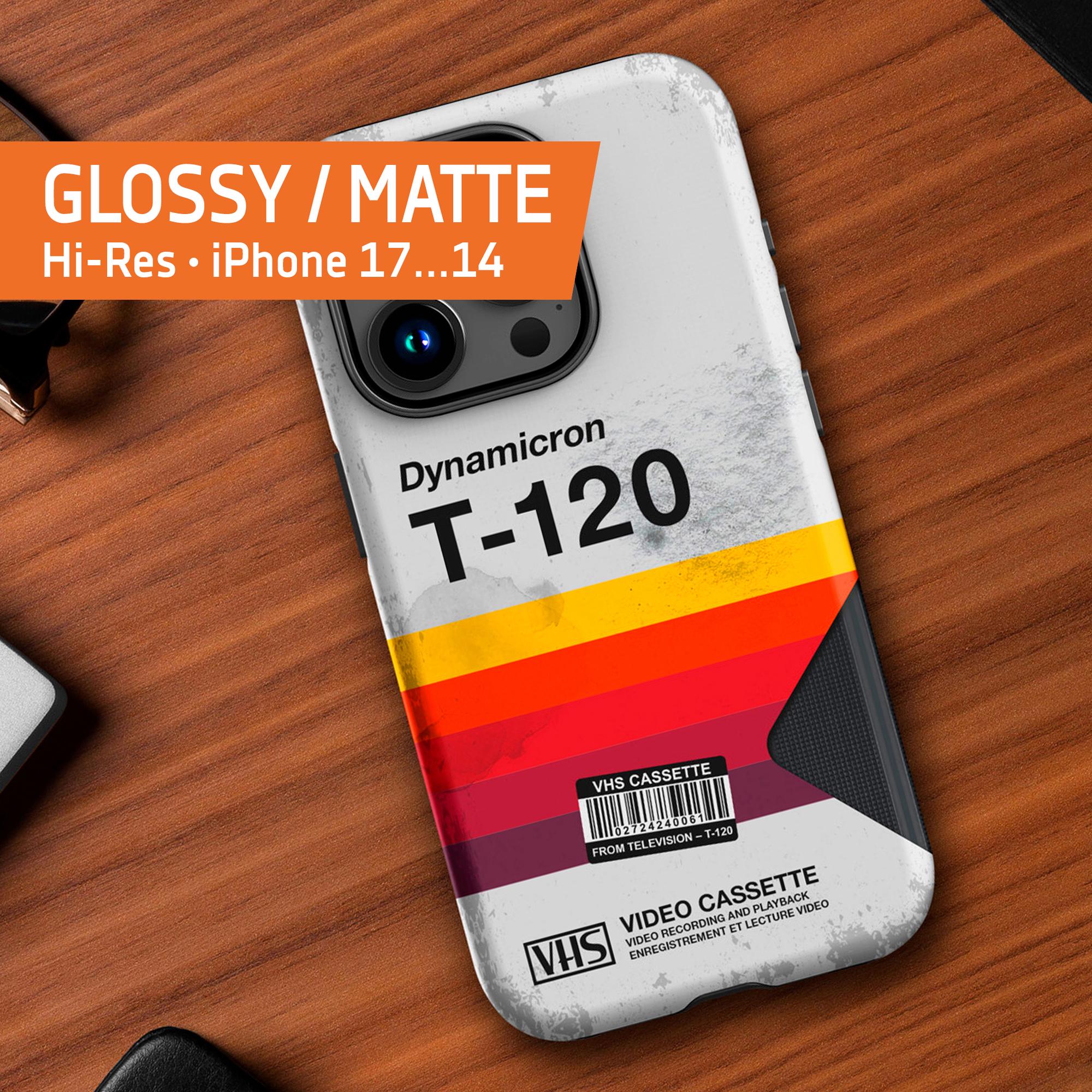 VHS cassette, case T-120 [retrowave/vaporwave] — Tough Glossy/Matte iPhone 17/16/15/14/13 case. 1980s iPhone case, retrowave phone case, nostalgia case ⛔ HQ-quality