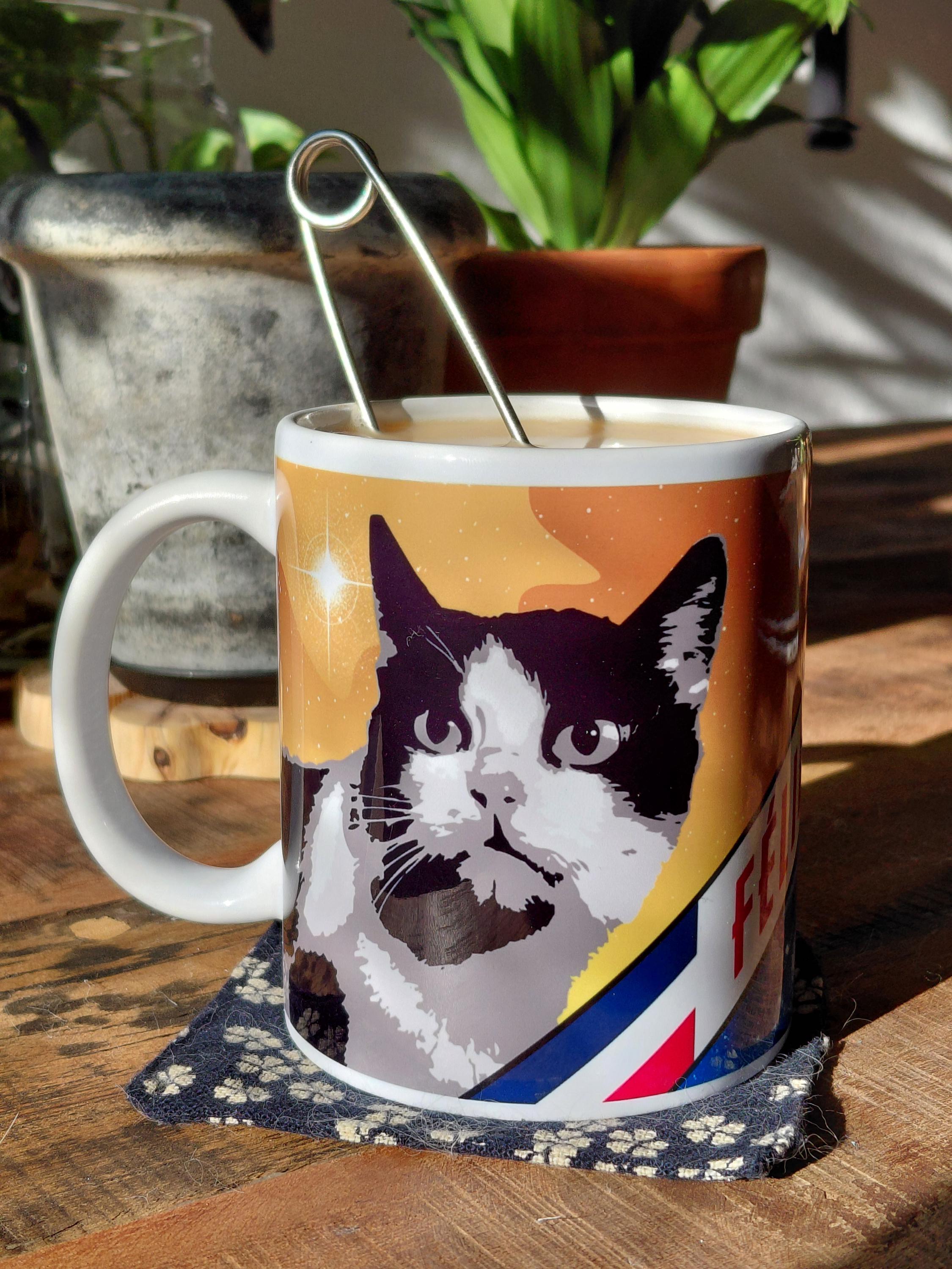 🐱🚀 Celebrate the historic space journey of Felicette, the first cat in space, with this charming France 1963 white glossy mug. Featuring retro space art and vintage French design, this mug is perfect for science lovers, space nerds, or cat enthusiasts. Makes a thoughtful and unique gift for fans of space history, animals in space, and French design culture.