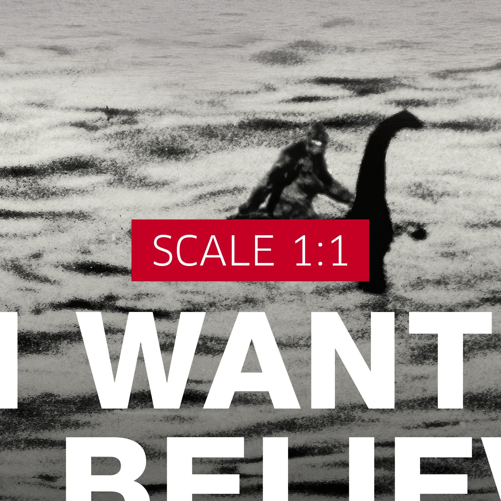I want to believe poster — With real Sasquatch riding on real Loch Ness Monster, X-Files art collage. 🎁Fox Mulder will be shocked by this gift ⛔ HQ-quality.