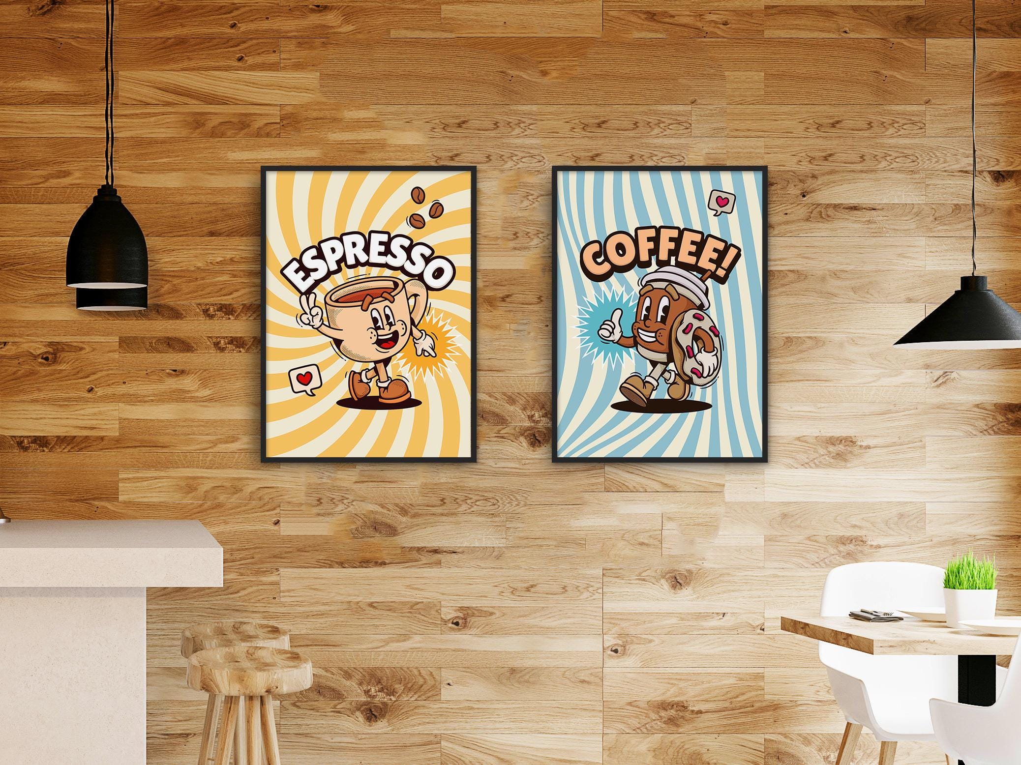 ☕ Add playful charm to your space with these retro cartoon coffee posters, designed in a bold vintage style with fun espresso characters. Perfect for kitchen decor, coffee shop wall art, or gifts for caffeine lovers, each print brings cheerful energy to any room. This collection of retro coffee artwork is ideal for fans of nostalgic design, barista culture, and quirky wall prints.