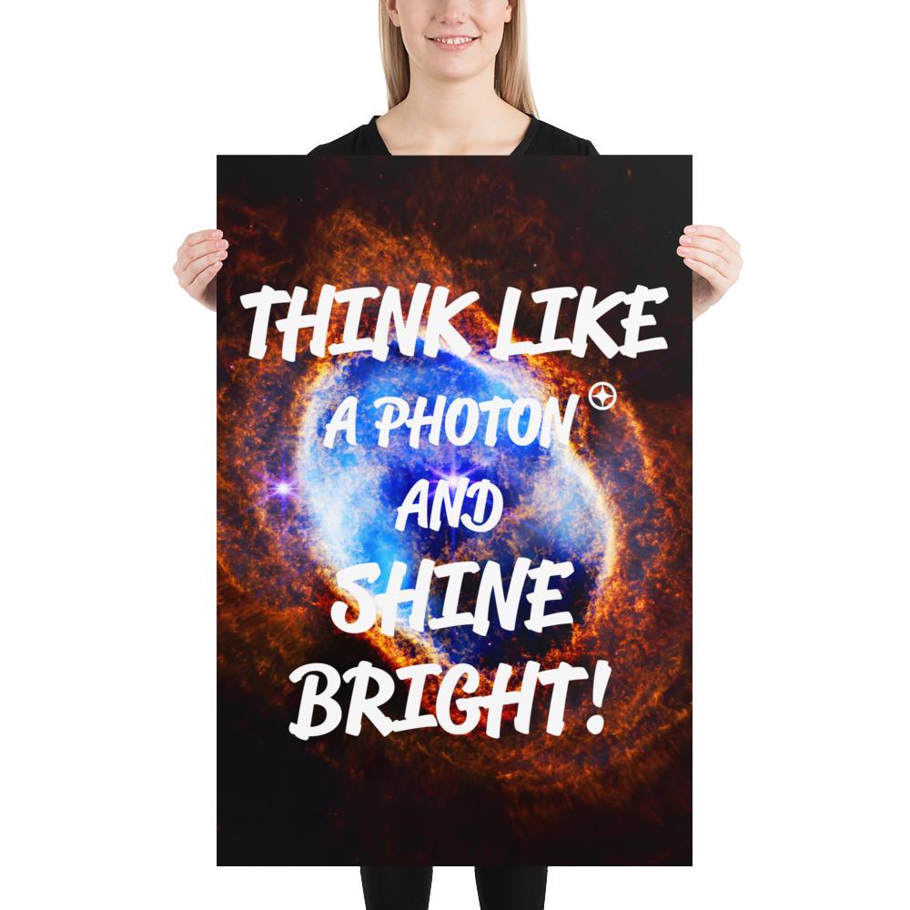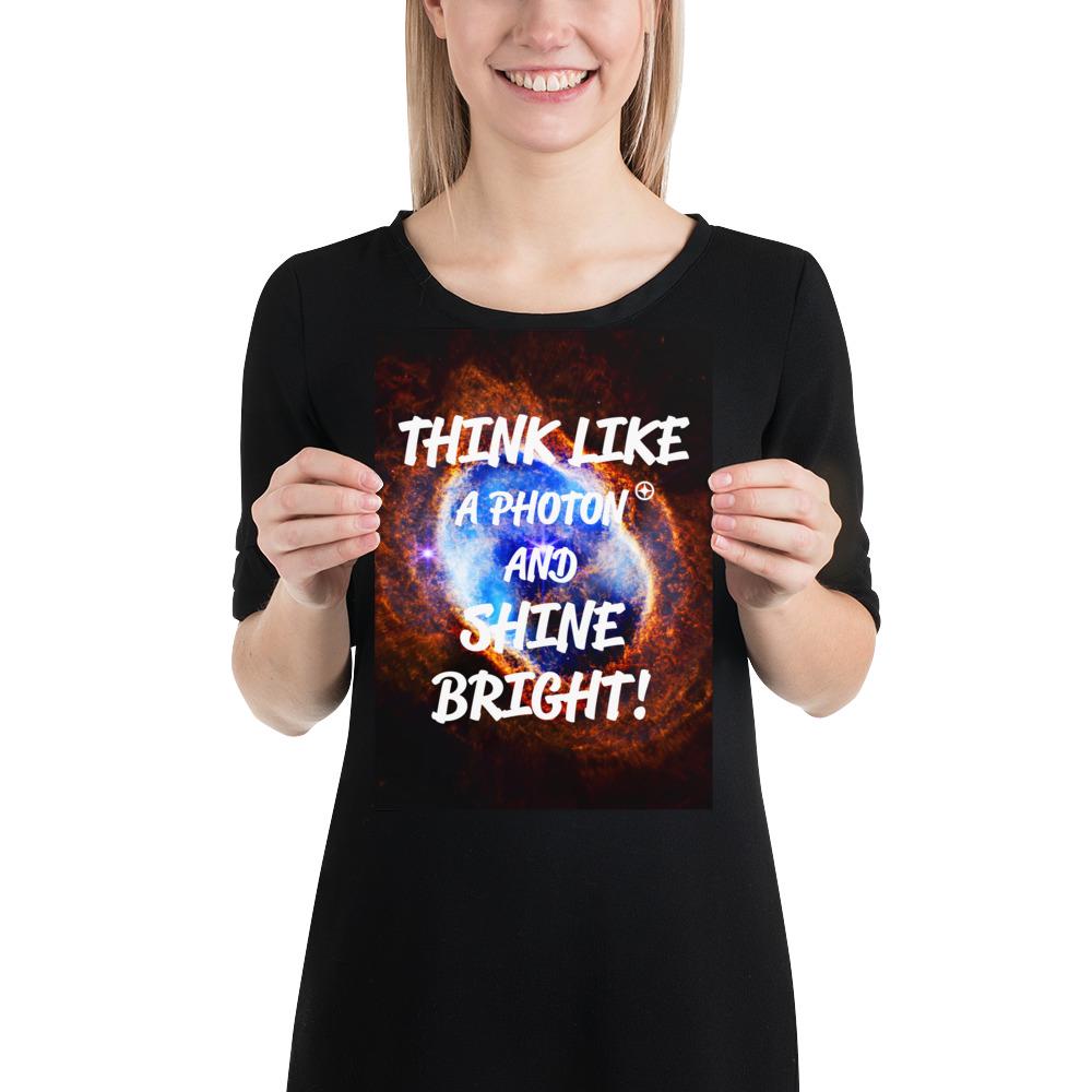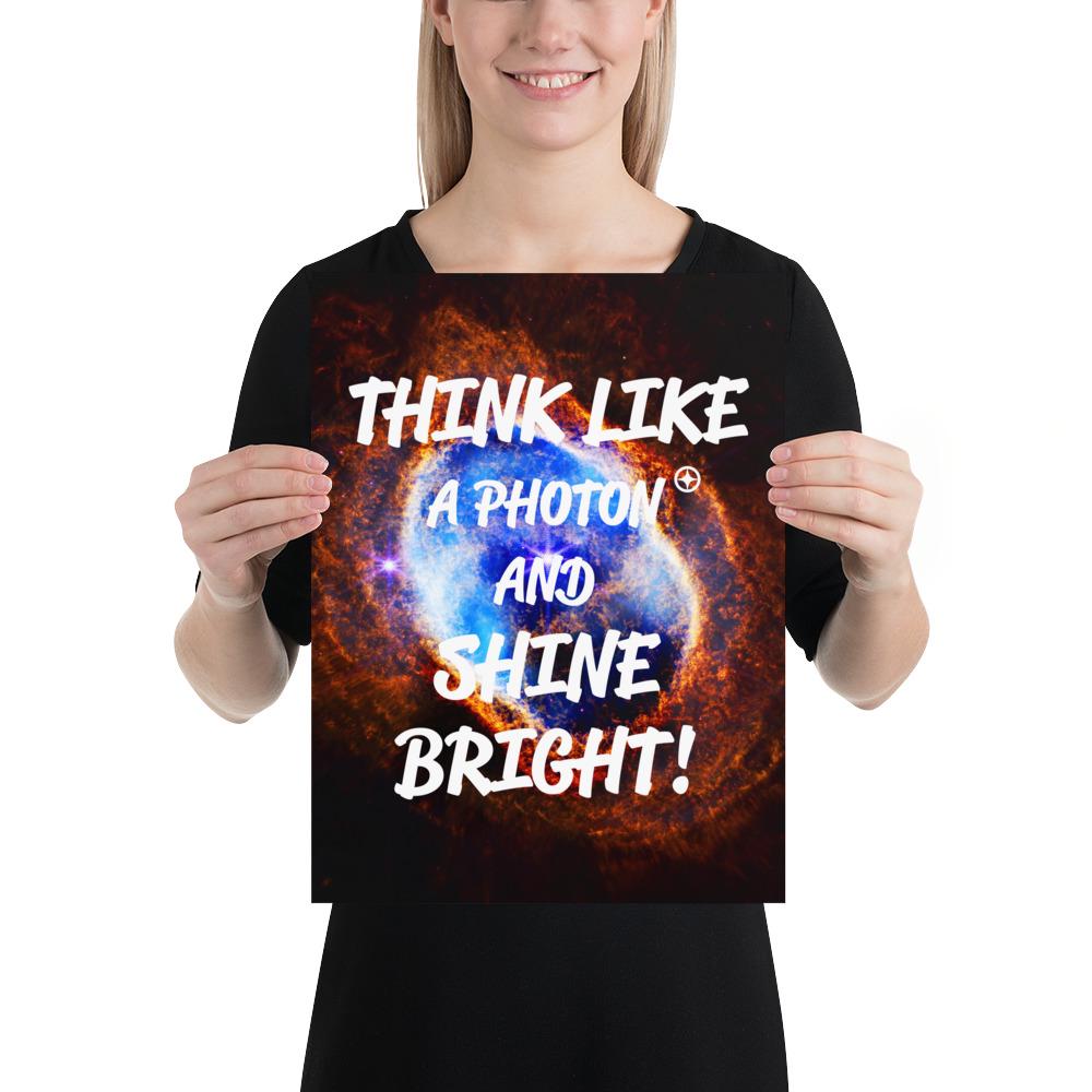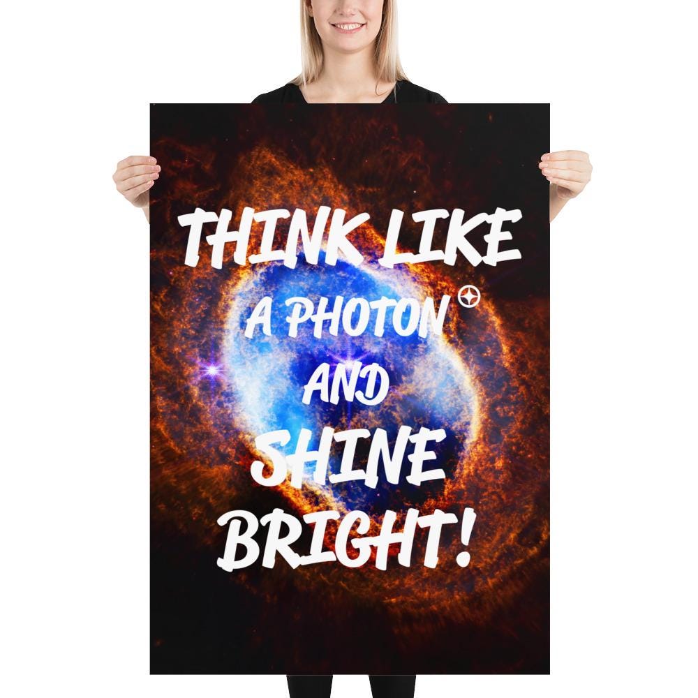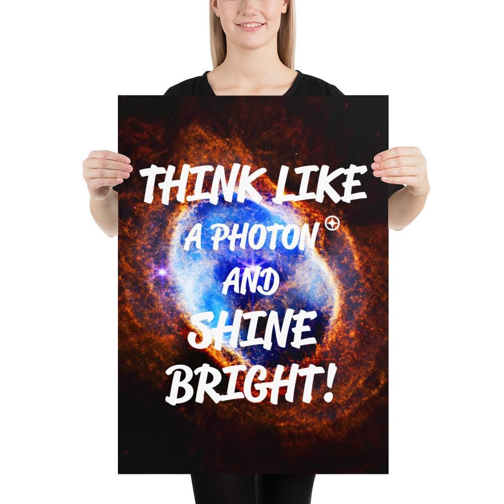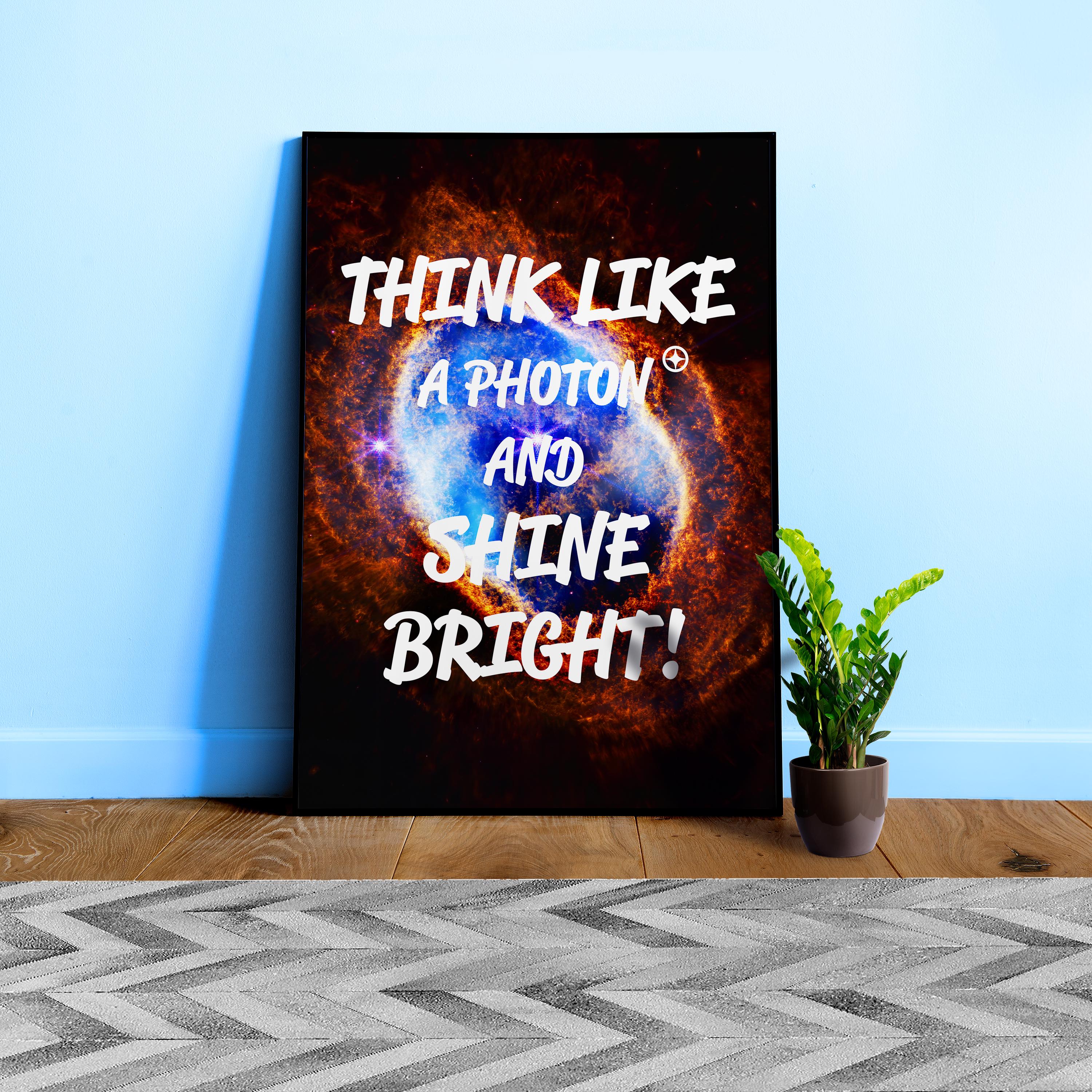 Science quote poster: Think like a Photon and shine bright! – James Webb JWST space print, inspiration quote, nerd wall art, funny motivational decor ⛔ HQ-quality.