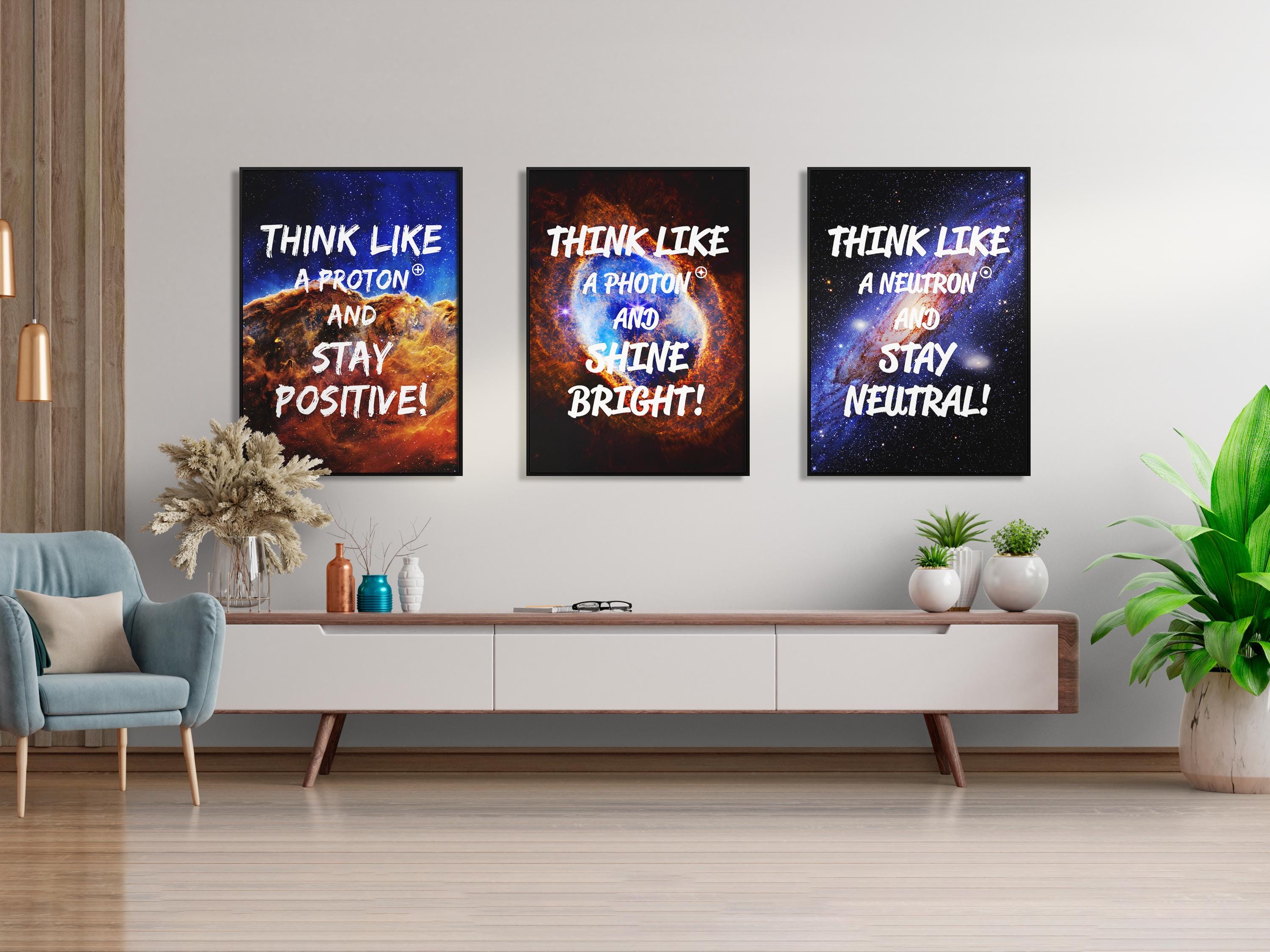 ✨ This inspiring science poster says “Think like a photon and shine bright” against a breathtaking James Webb (JWST) cosmic background. Perfect wall art for physics lovers, science classrooms, and astronomy fans who love clever quotes and space-inspired motivation. A vibrant JWST galaxy print that combines humor, light, and the brilliance of science.