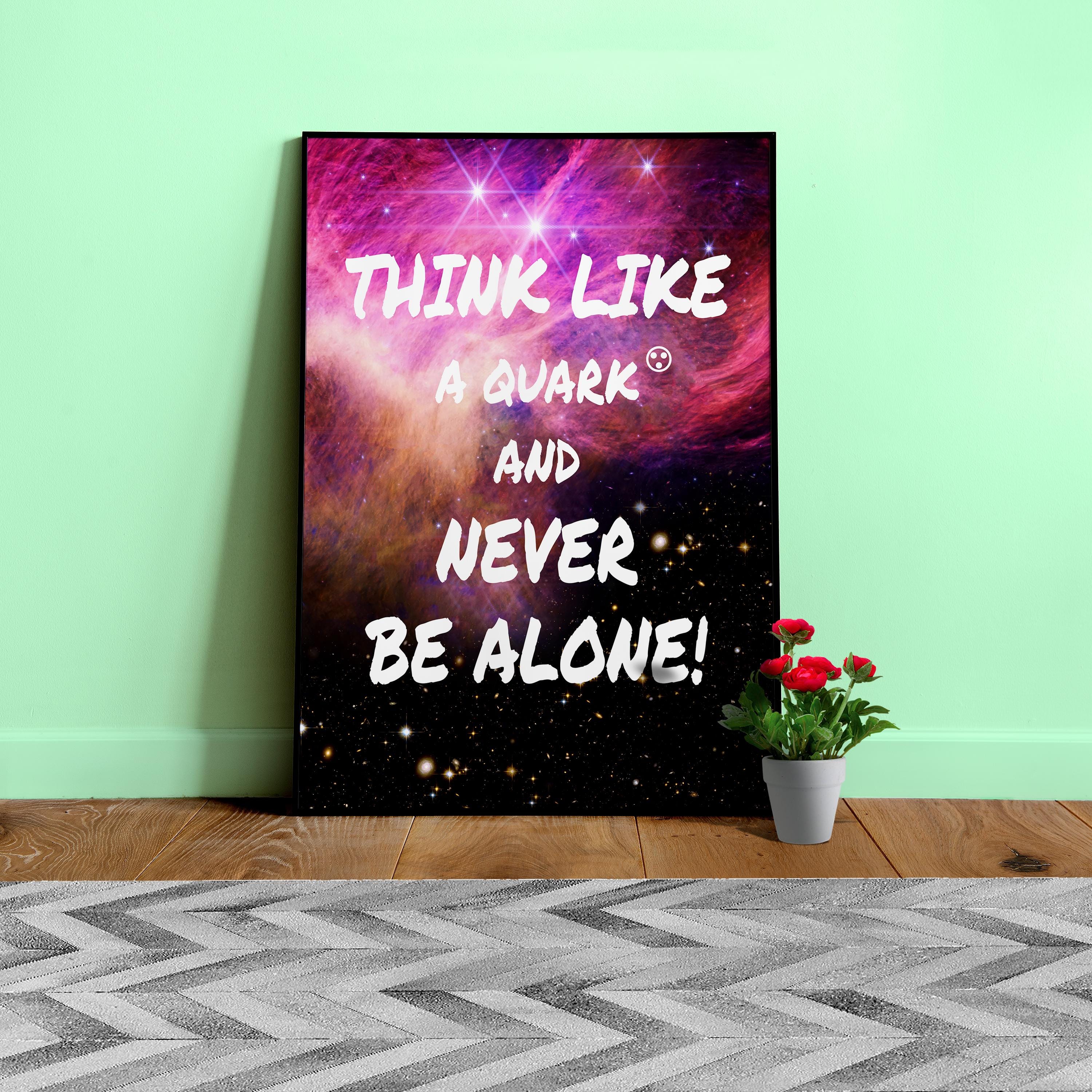 Science quote poster: Think like a Quark and never be alone! – James Webb JWST space print, inspiration quote, nerd wall art, motivational decor ⛔ HQ-quality.