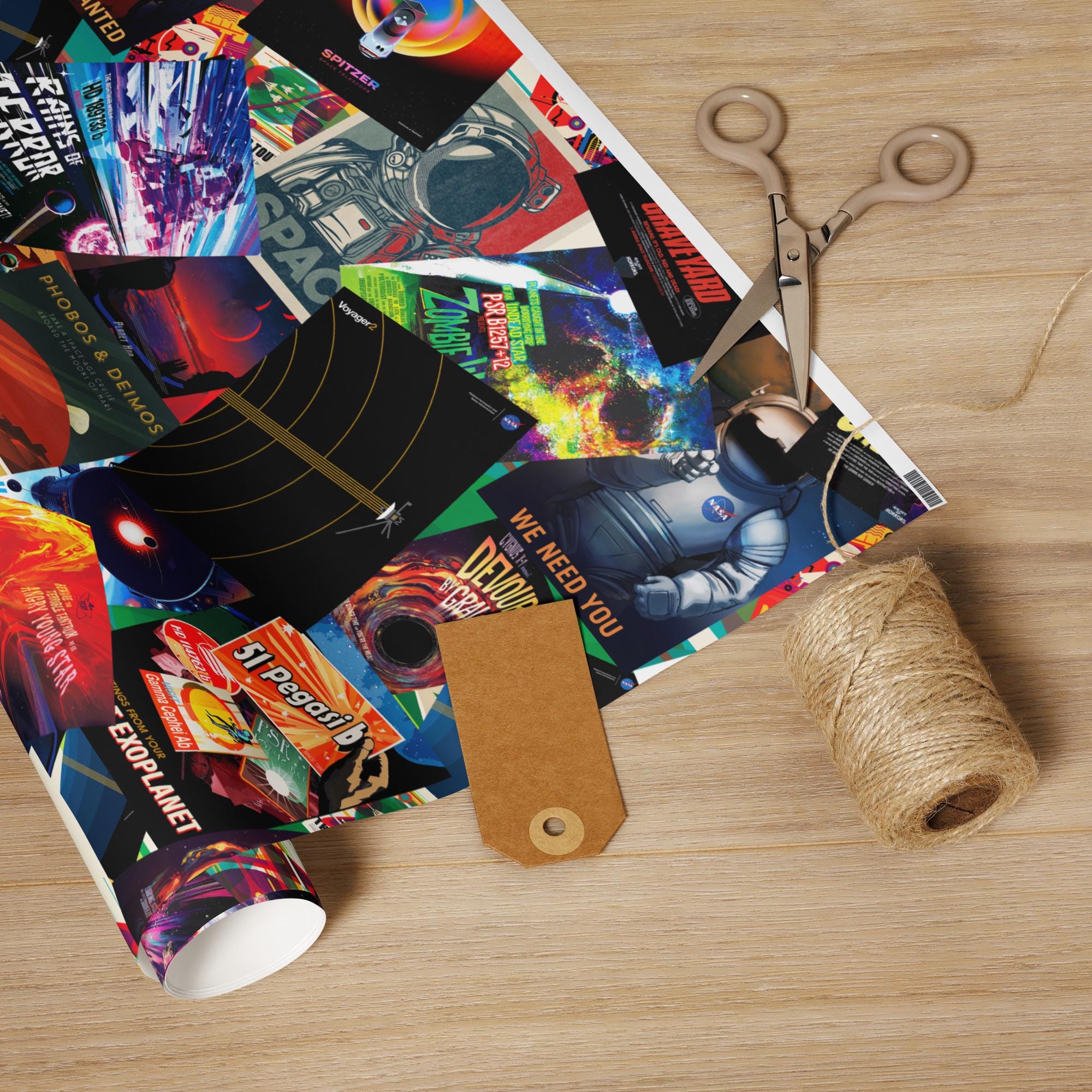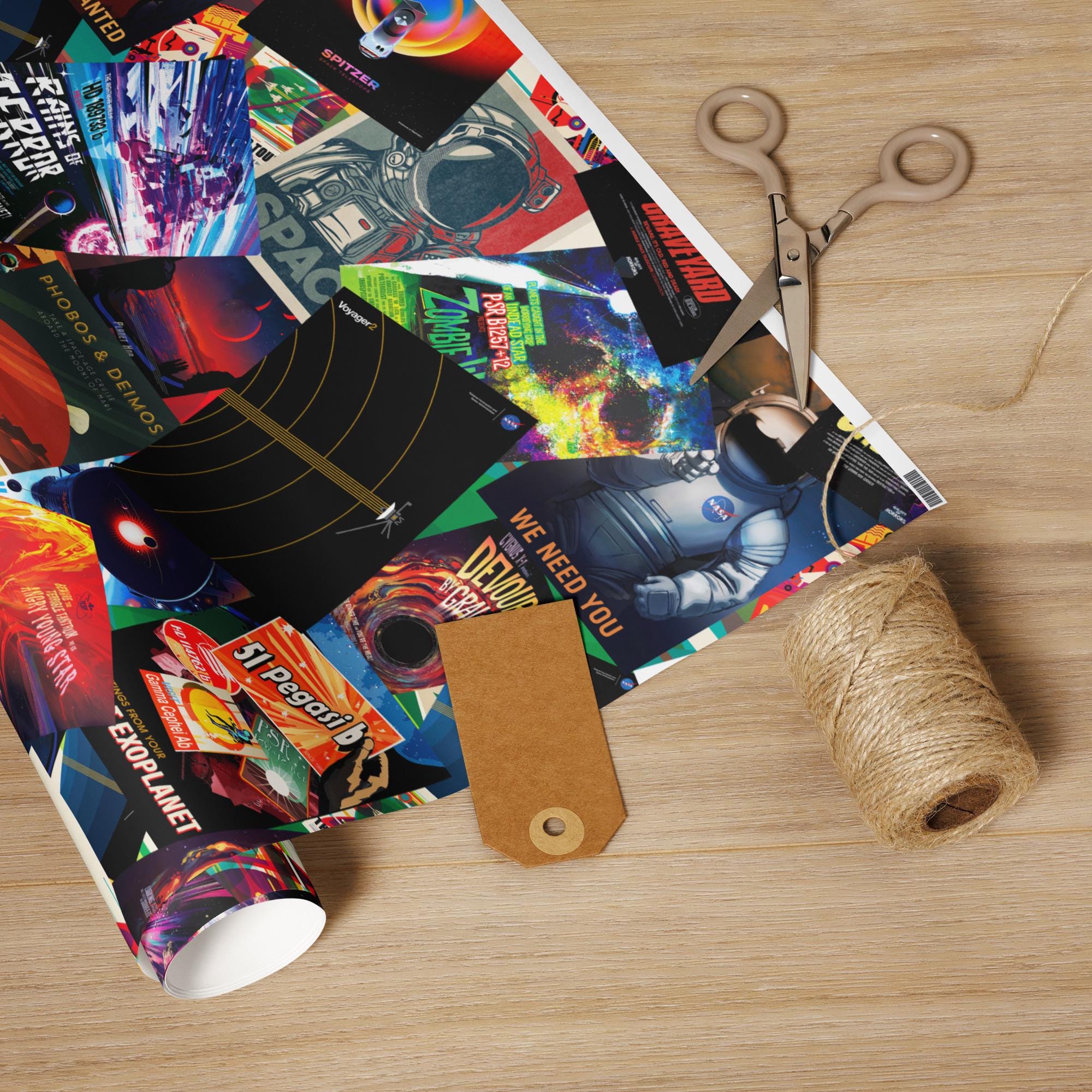 🪐 This Retro Space Posters Wrapping Paper captures the nostalgic charm of mid-century sci-fi and the Space Age. Perfect for Christmas and New Year gifts, it features colorful vintage rocket and planet illustrations inspired by 1950s poster art. Add a cosmic touch of retro futurism to your holiday packaging and make every gift feel out of this world!