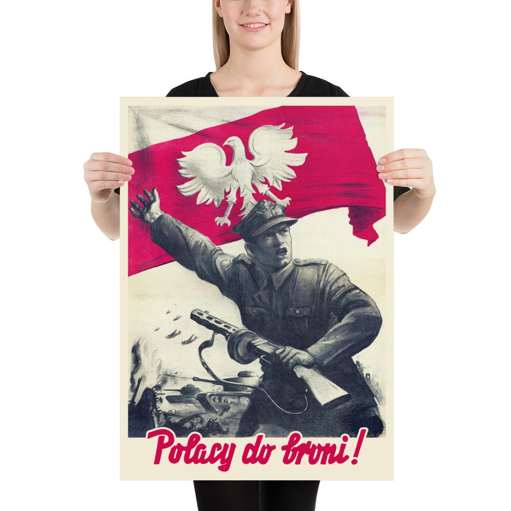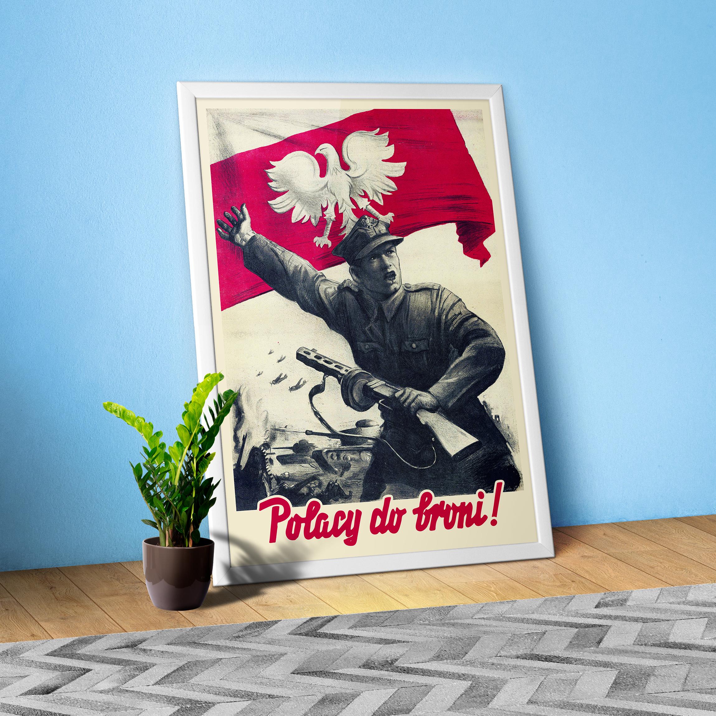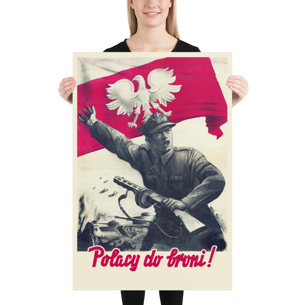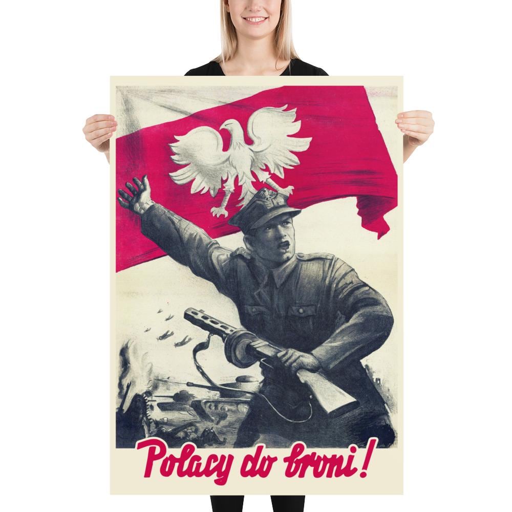 🇵🇱 This vintage Poland poster from 1944 captures the courage and determination of the Polish army defending their homeland. The artwork “Polacy do broni!” (“Poles to arms!”) reflects the patriotic spirit and resilience of an independent Poland before World War II. Perfect for collectors of historical prints, vintage war posters, or Polish heritage art enthusiasts.
