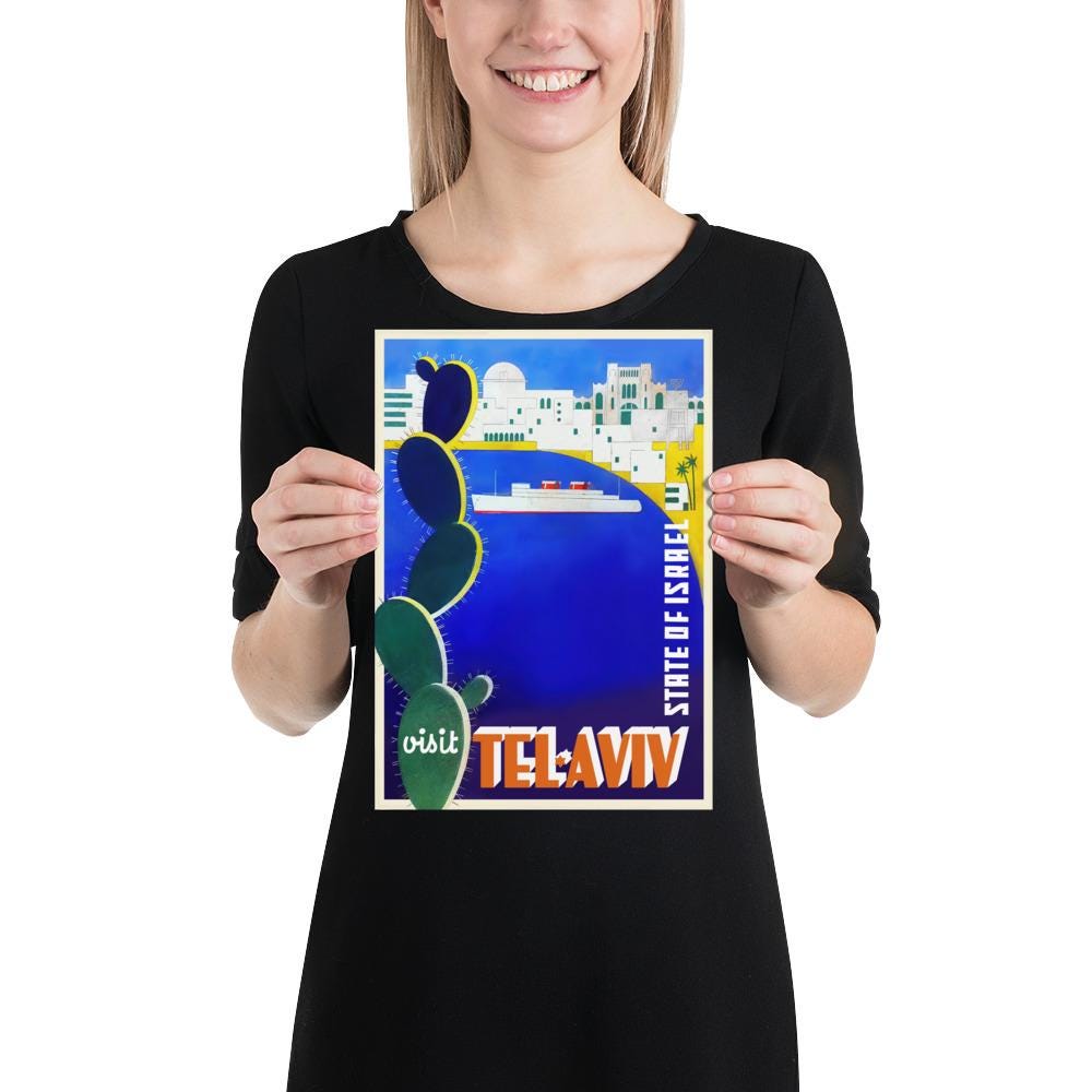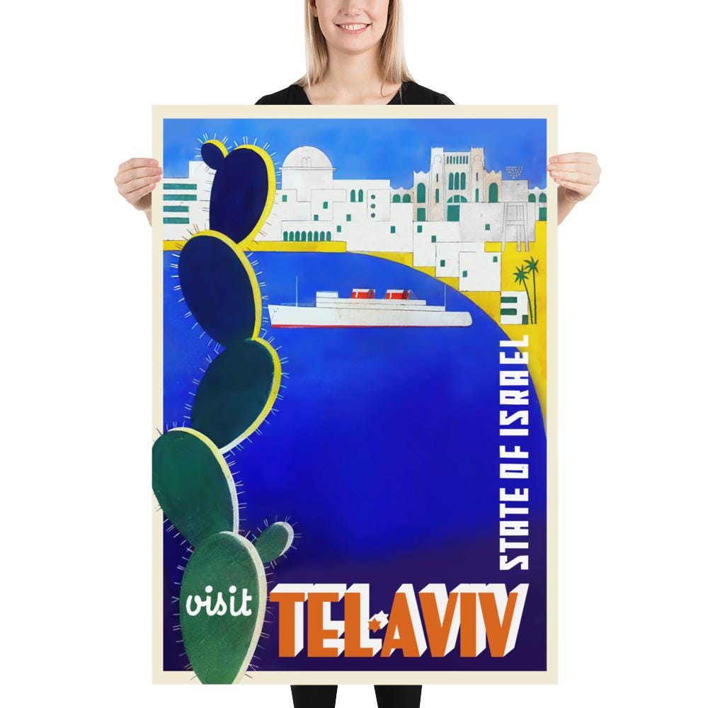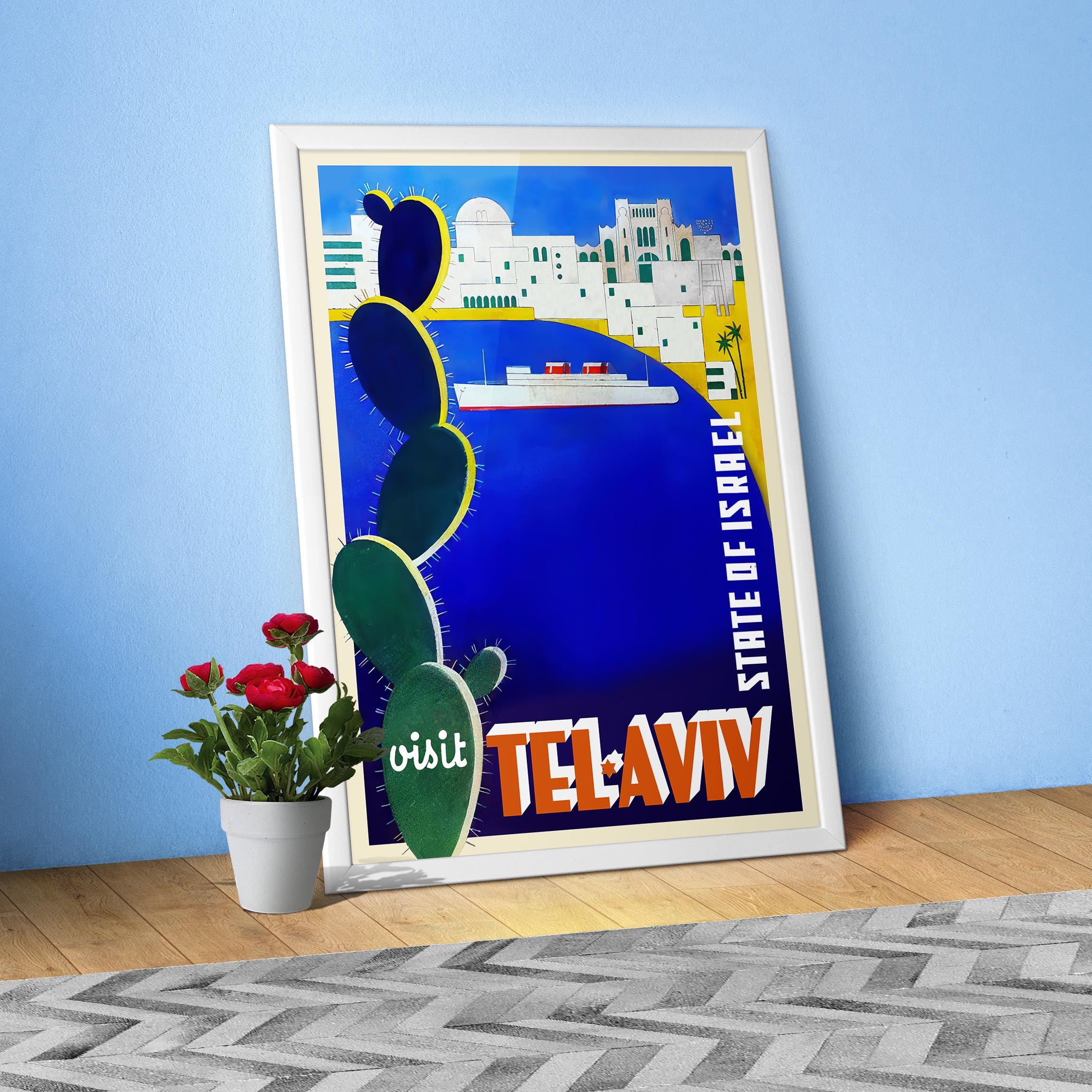 🌞 This original Visit Tel Aviv vintage poster from 1948 celebrates the birth of the State of Israel with vivid Mediterranean colors and modernist charm. Expertly restored and enhanced by our designers, this rare Tel Aviv travel print brings history, art, and optimism into your home. Perfect for collectors of vintage Israel posters, retro travel art, and mid-century design lovers.