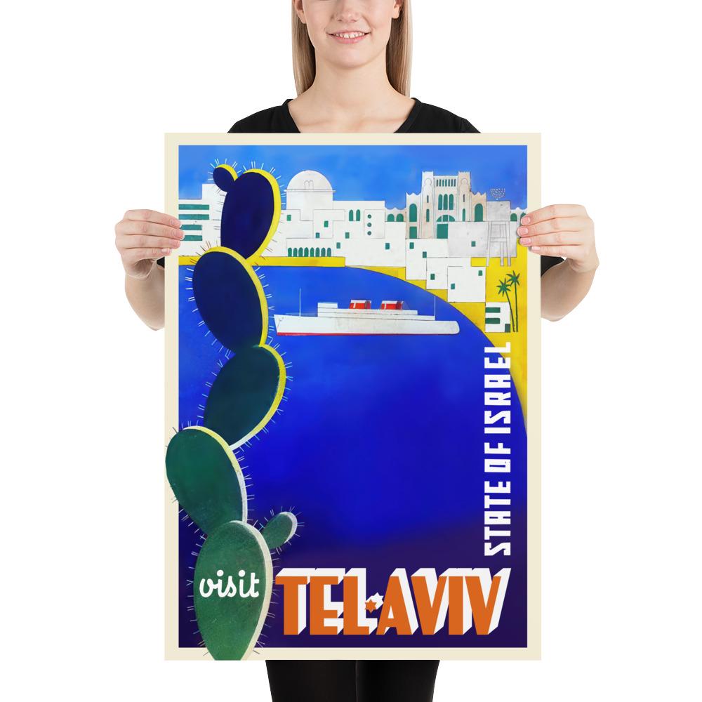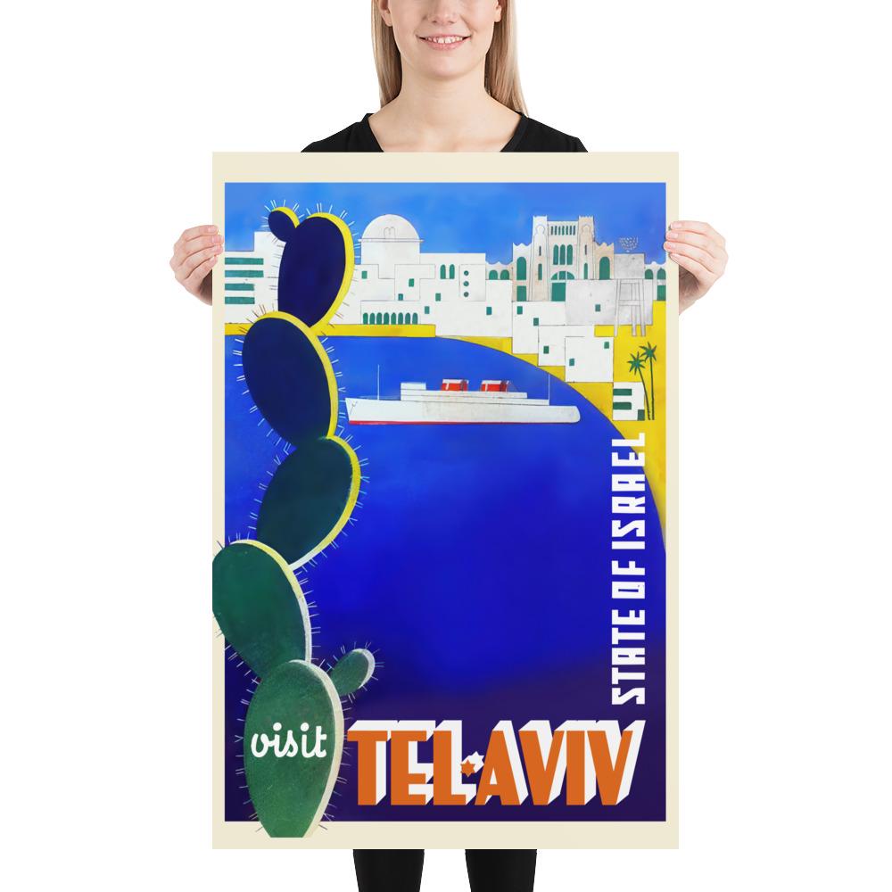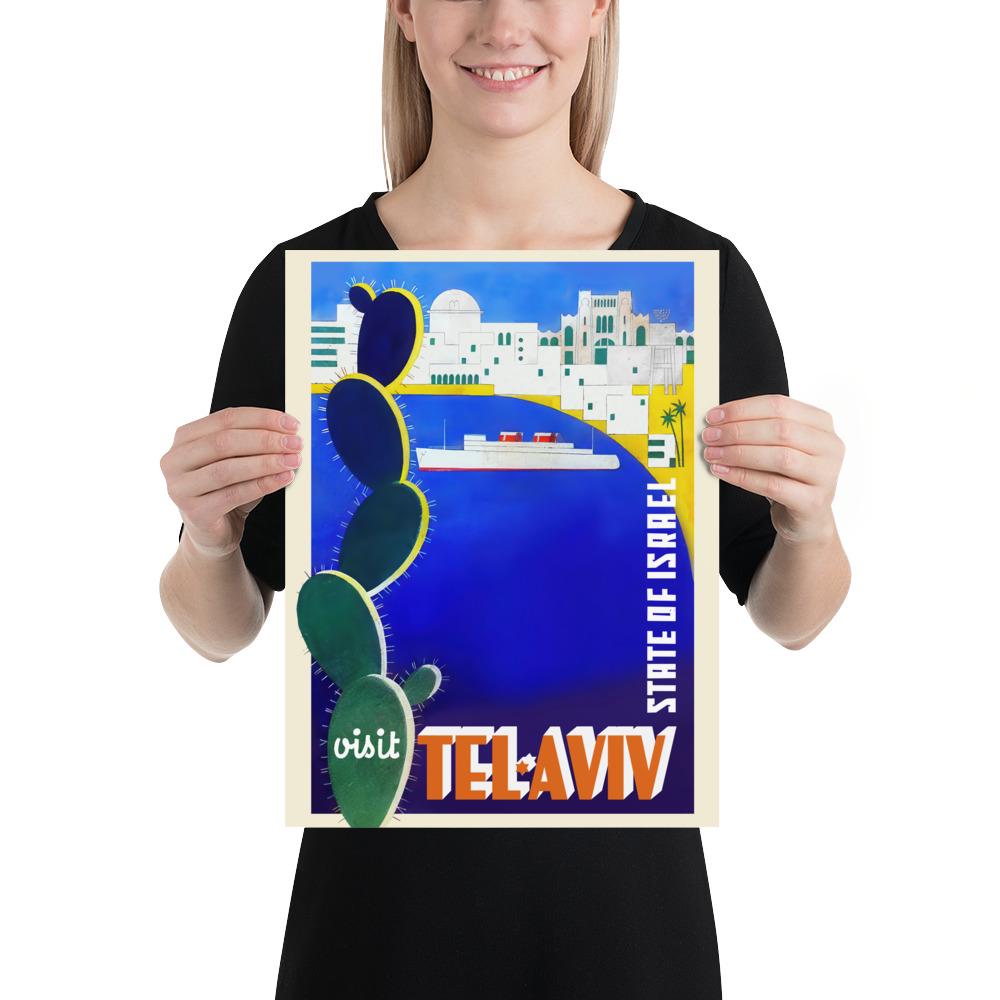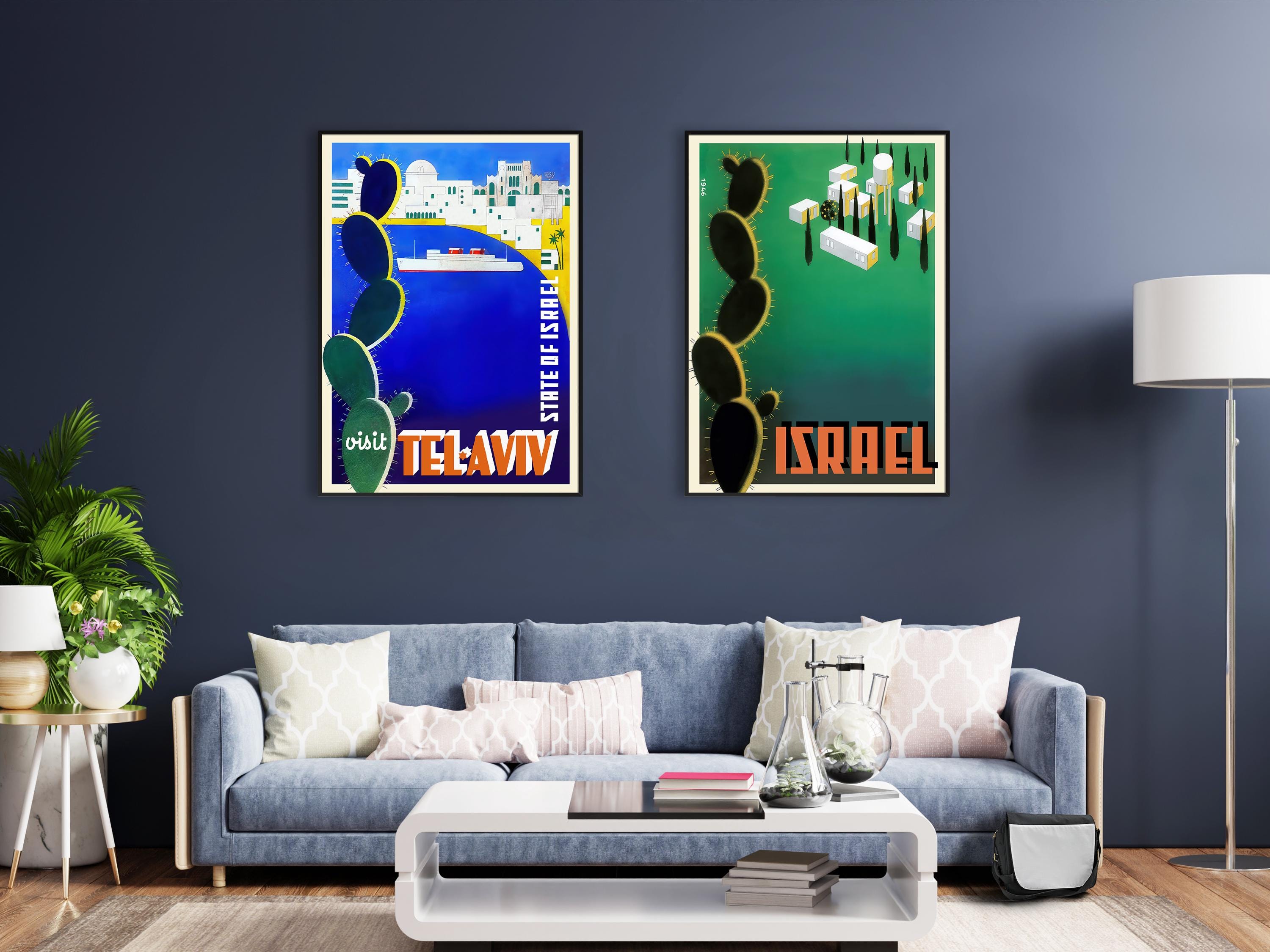 🌞 This original Visit Tel Aviv vintage poster from 1948 celebrates the birth of the State of Israel with vivid Mediterranean colors and modernist charm. Expertly restored and enhanced by our designers, this rare Tel Aviv travel print brings history, art, and optimism into your home. Perfect for collectors of vintage Israel posters, retro travel art, and mid-century design lovers.