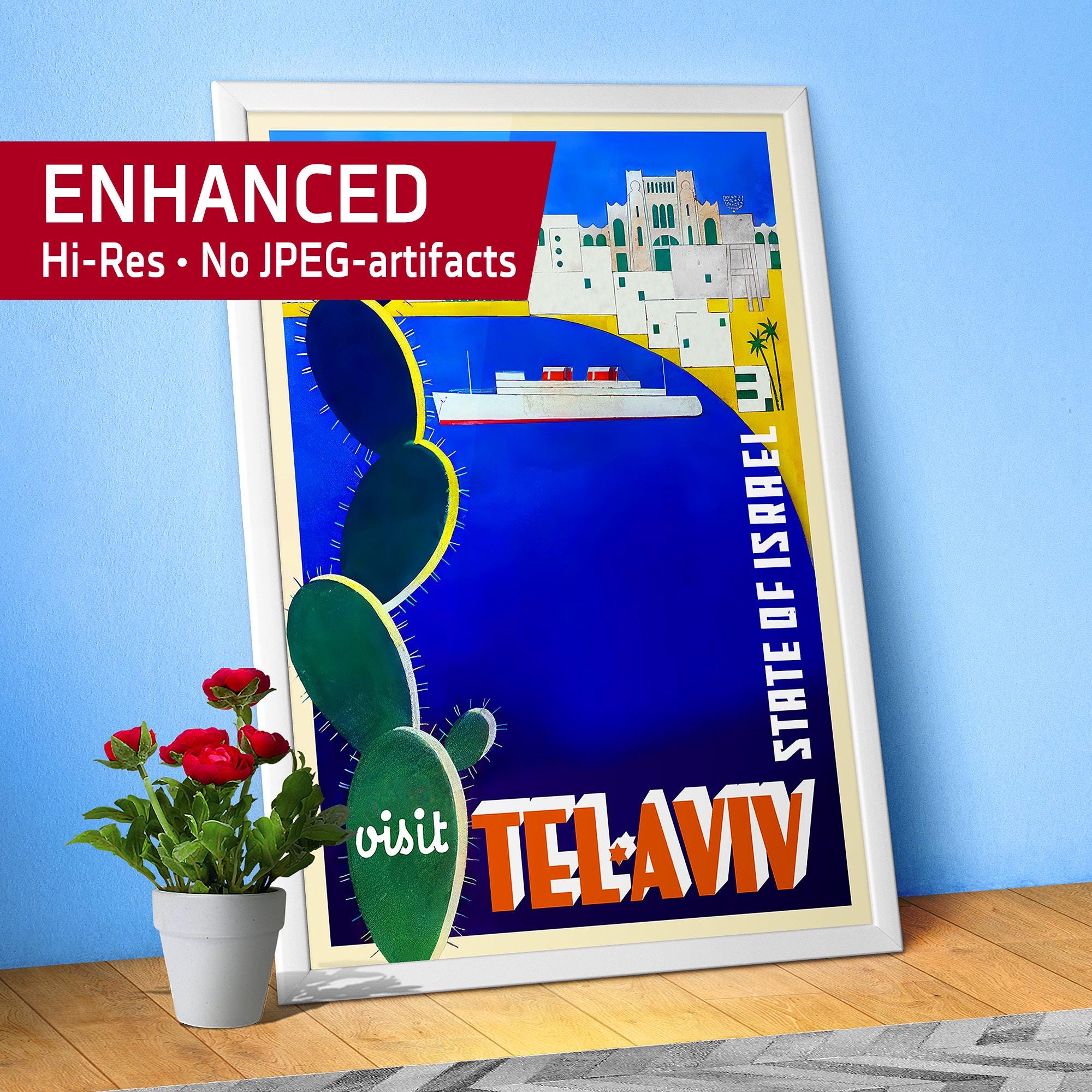 Visit Tel Aviv Poster, 1948 – Vintage Israel Travel Print 1940s. Restored Retro Wall Art, Rare Mid Century Modern Decor ⛔ HQ-quality.