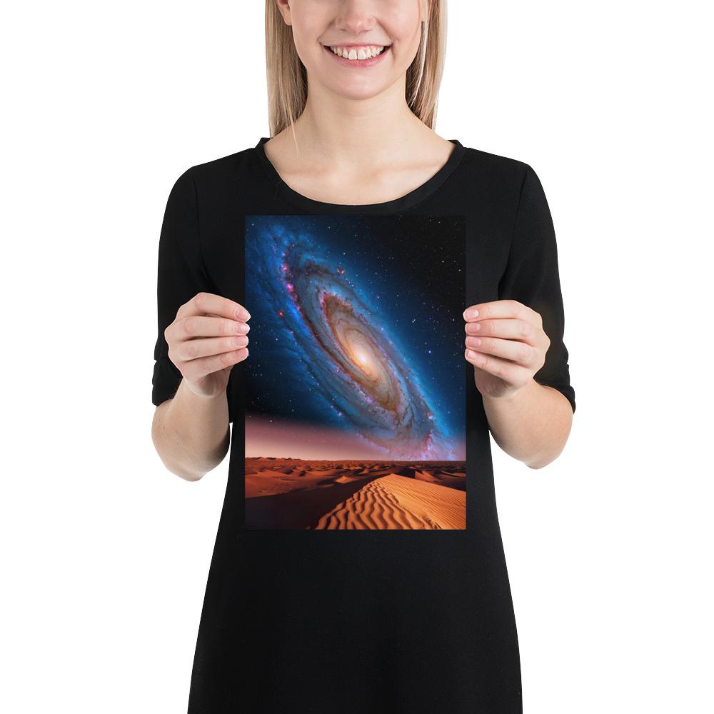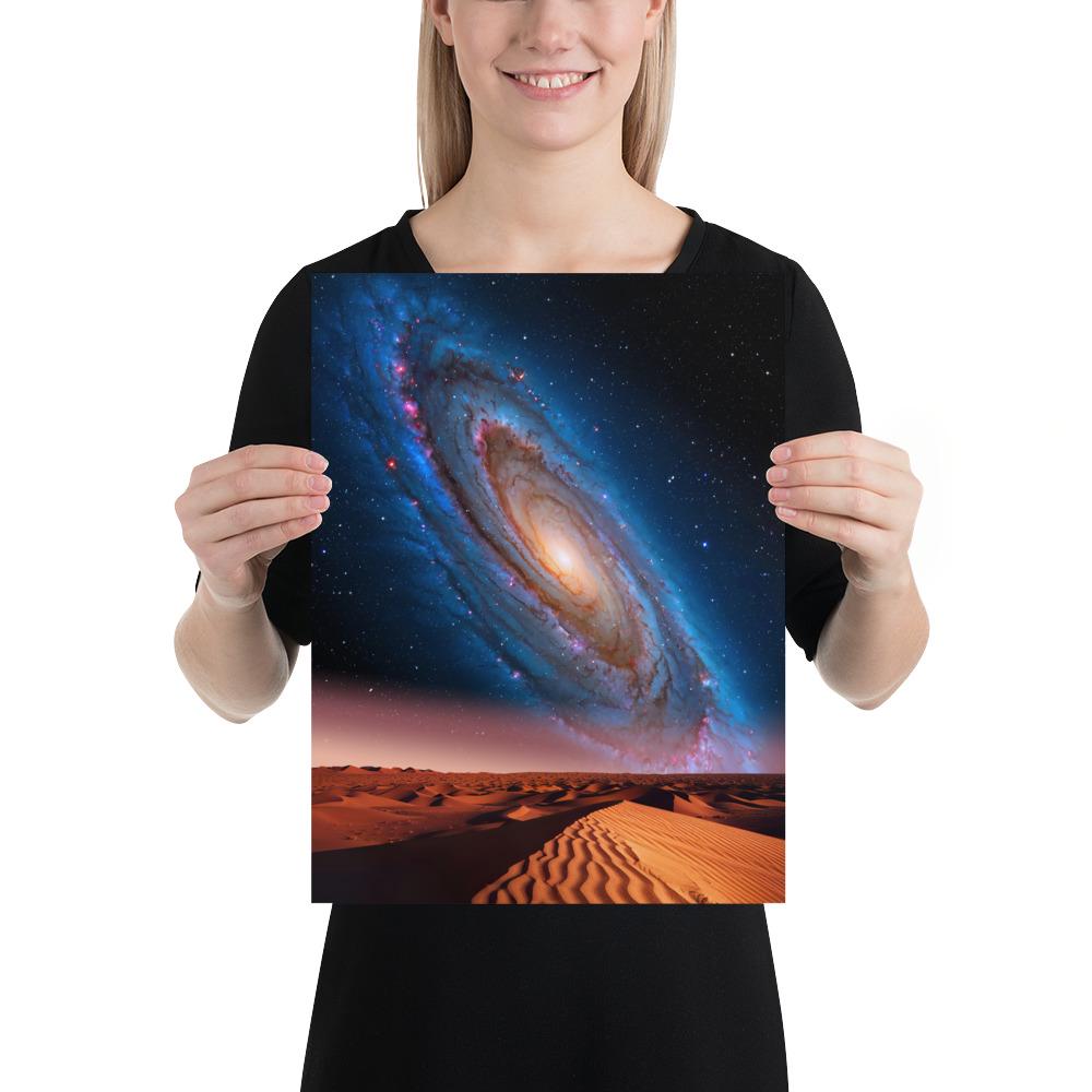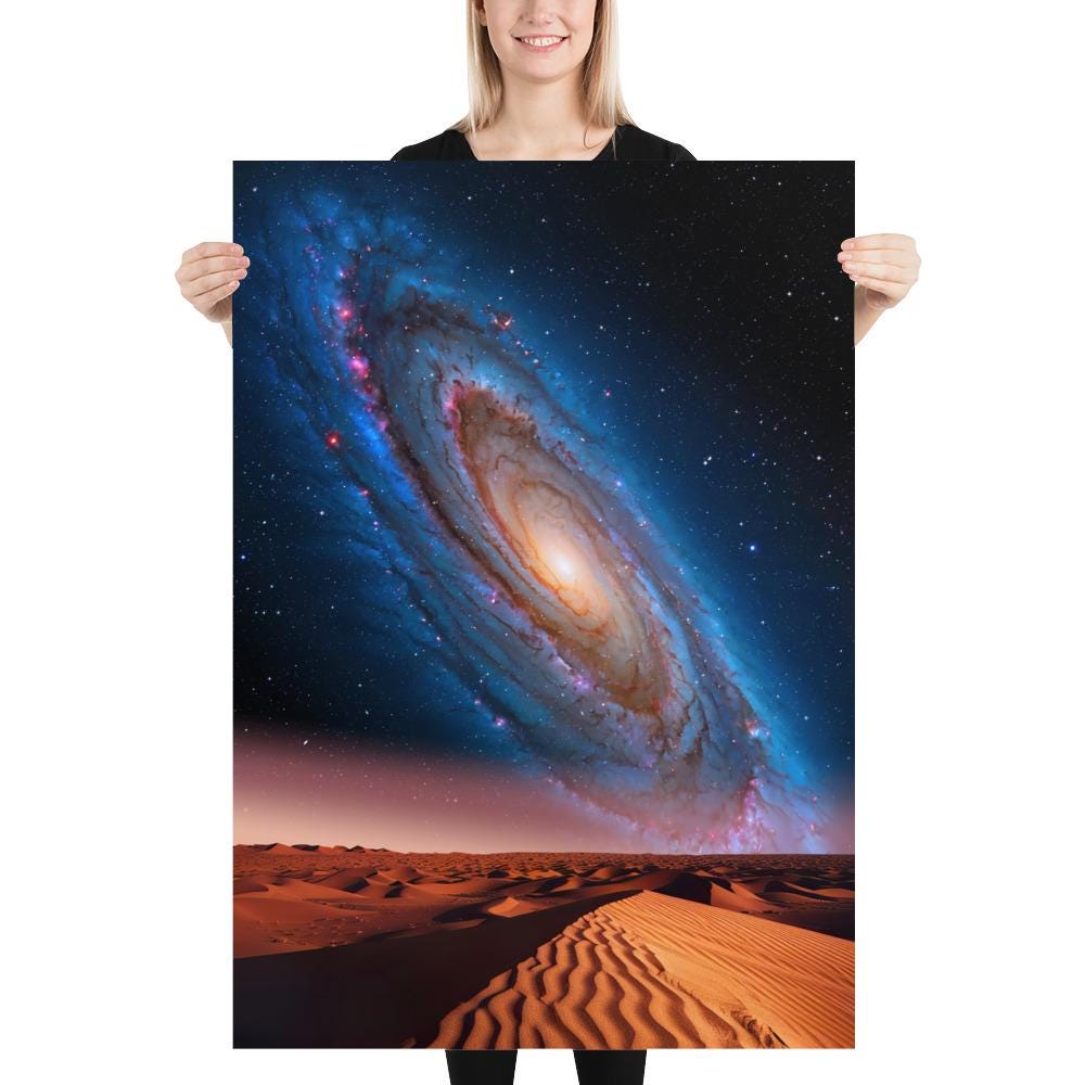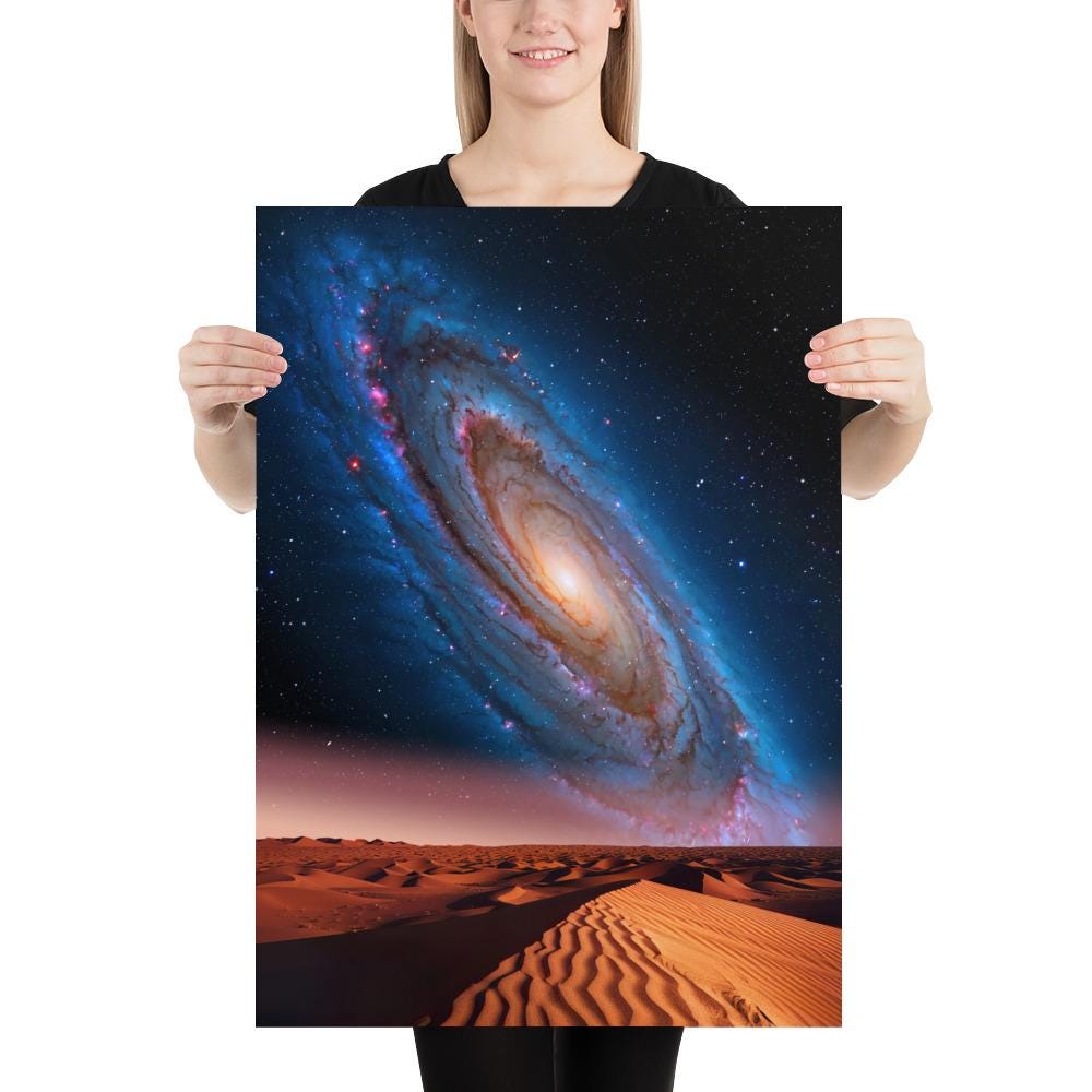 Andromeda Galaxy above the desert: space poster – Surreal Landscape art print. Night Sky wall decor, Cosmic Surrealism astronomy ⛔ HQ-quality print.