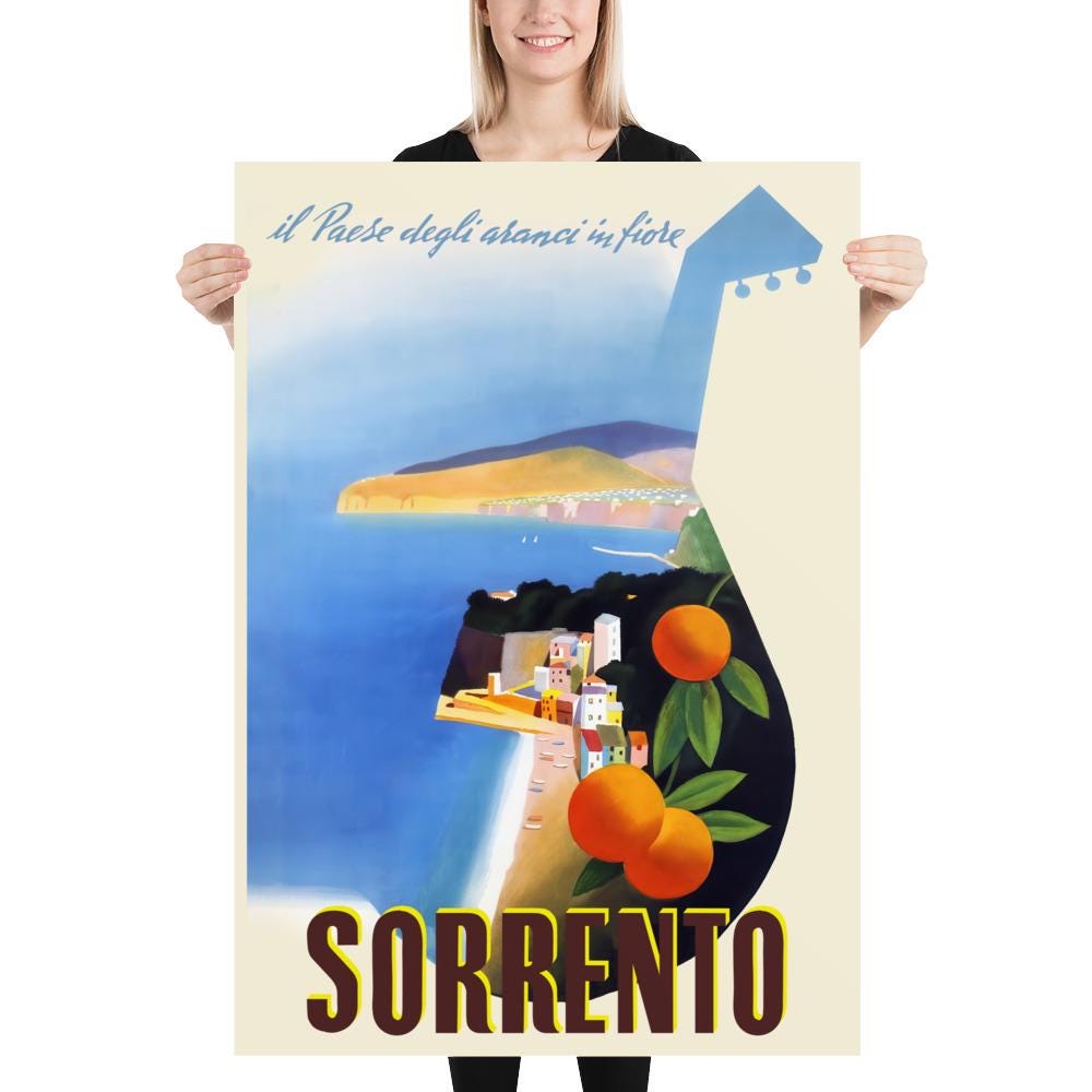 Sorrento, Italy 1950s poster – Vintage Italy travel print. Napoli Beach Retro Wall Art, Retro Mid Century Decor ⛔ HQ-quality.