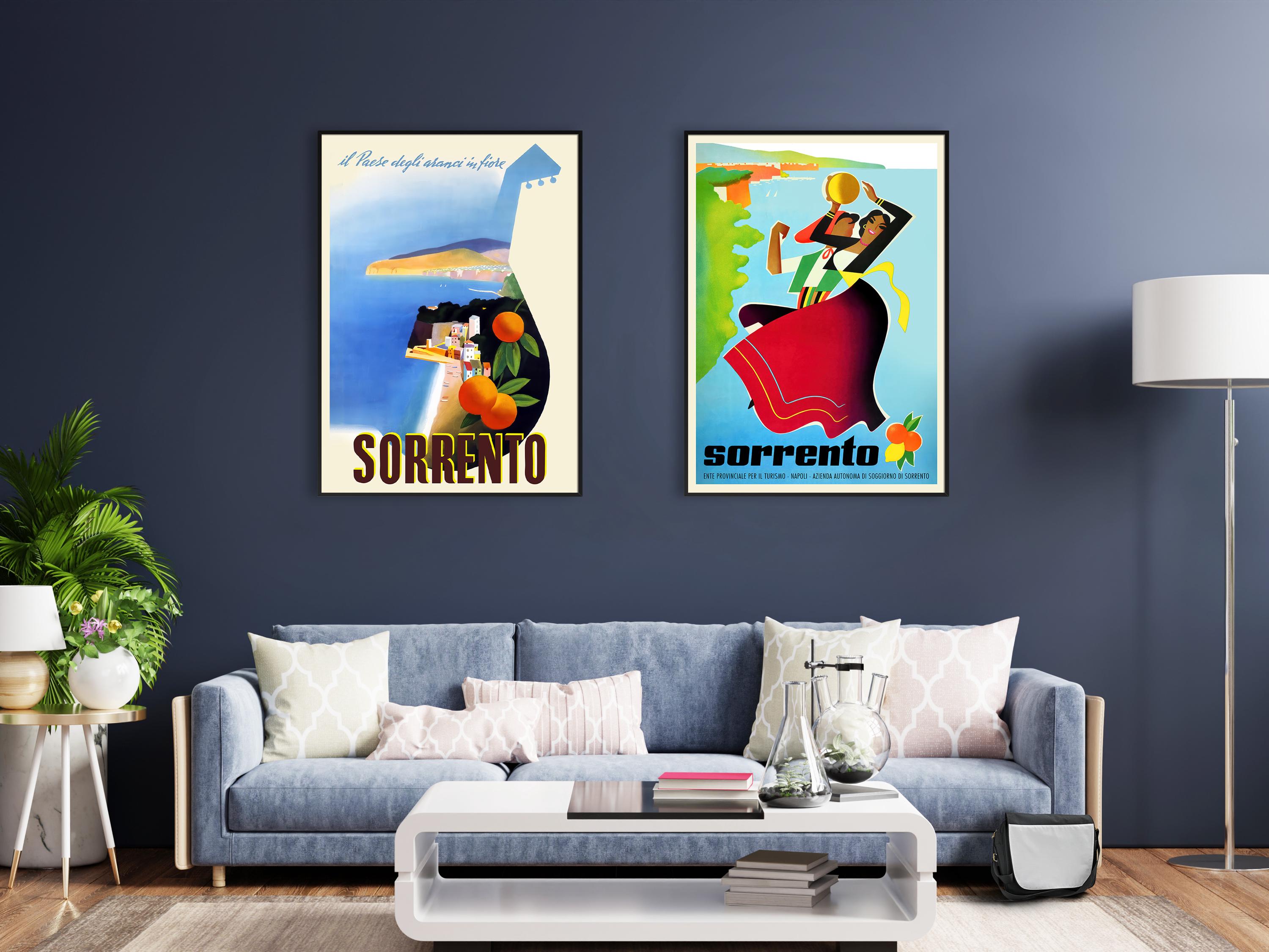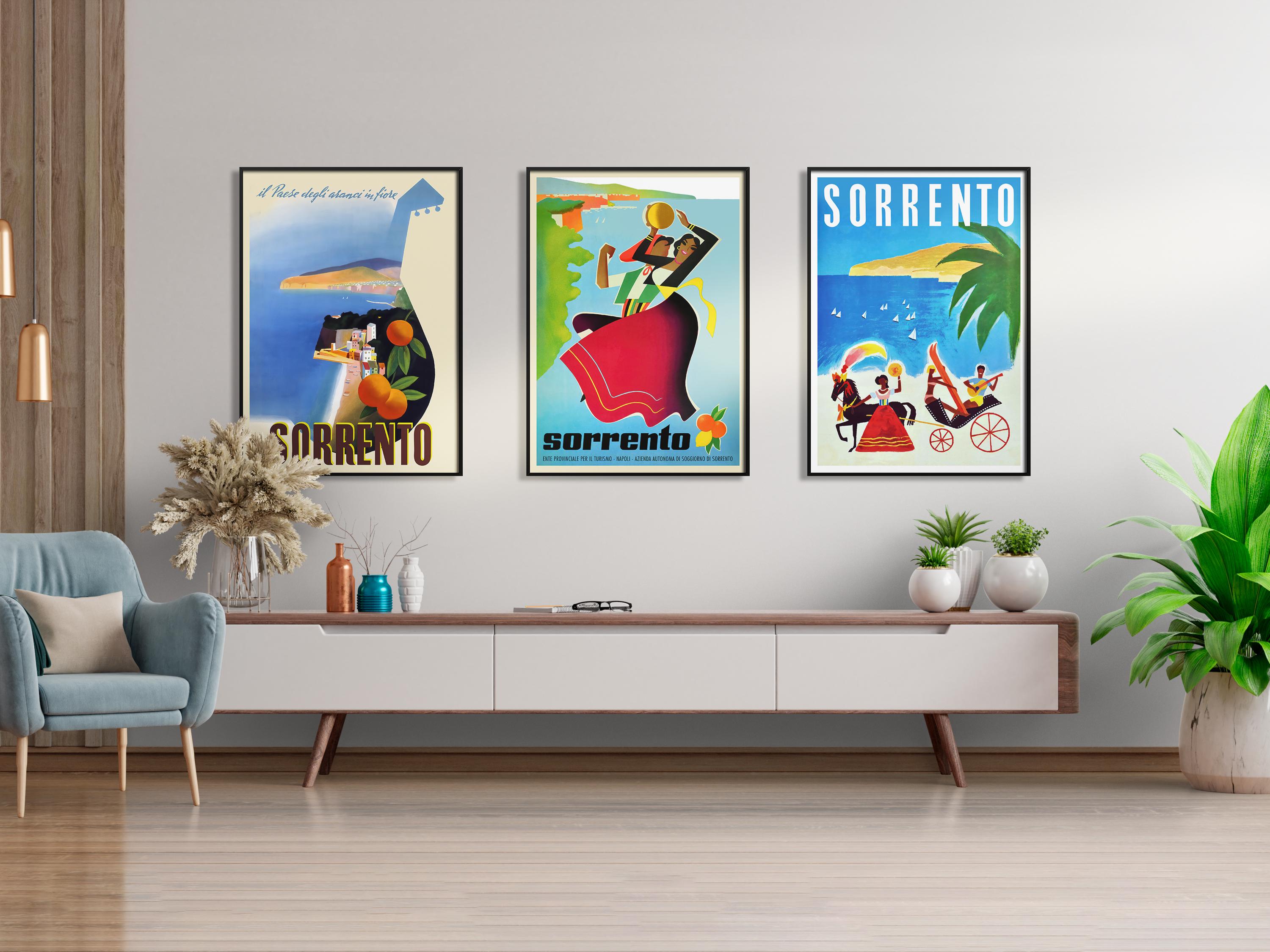 🌅 This Sorrento, Italy 1950s poster captures the charm of the Amalfi Coast in timeless retro travel style. Perfect for adding a warm Mediterranean vibe to your home, office, or holiday house decor. This vintage Italy wall art brings back the golden age of Italian tourism with elegant colors and nostalgic seaside beauty.