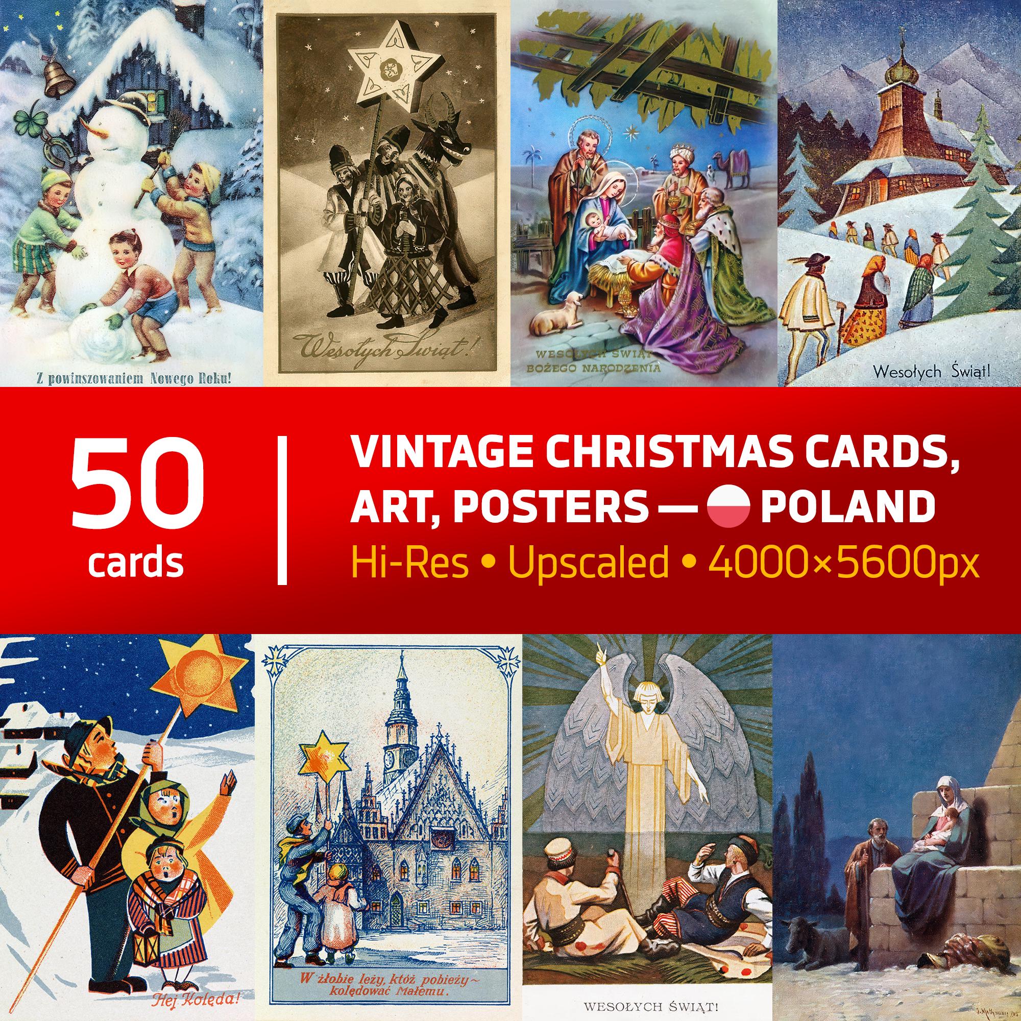 Vintage Polish Christmas Cards Digital Download – 50 Retro Holiday Cards from Poland, Hi-Res 2026 Printable Xmas Art Bundle ⛔ HQ-quality.