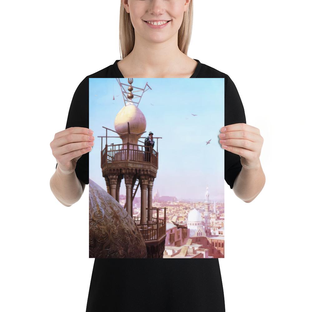 🕌 Capture a rare moment of Islamic tradition with this reproduction of A Muezzin Calling from the Top of a Minaret, painted by Jean-Léon Gérôme in 1879. This uncommon artwork shows a muezzin delivering the call to prayer high above the city, framed by dramatic light and architectural detail. Perfect for collectors seeking rare Orientalist prints, Islamic cultural scenes, and historic Middle Eastern art.