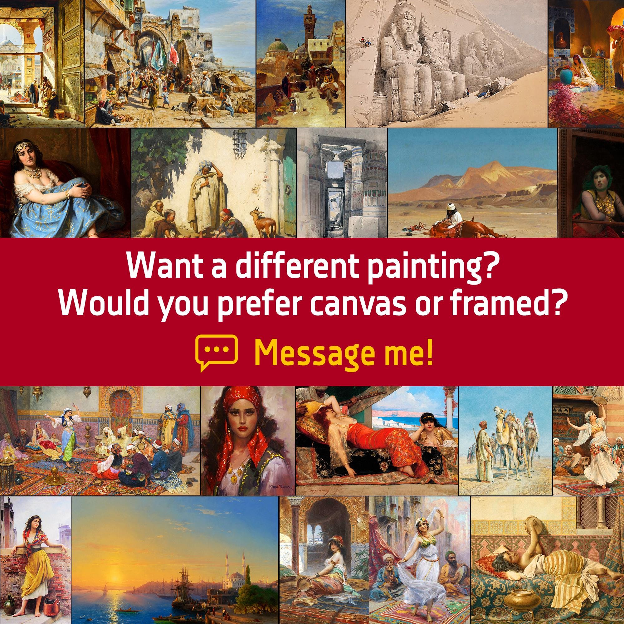 📢 Want a different orientalism painting? Would you prefer canvas or framed? – 💬 Message me!