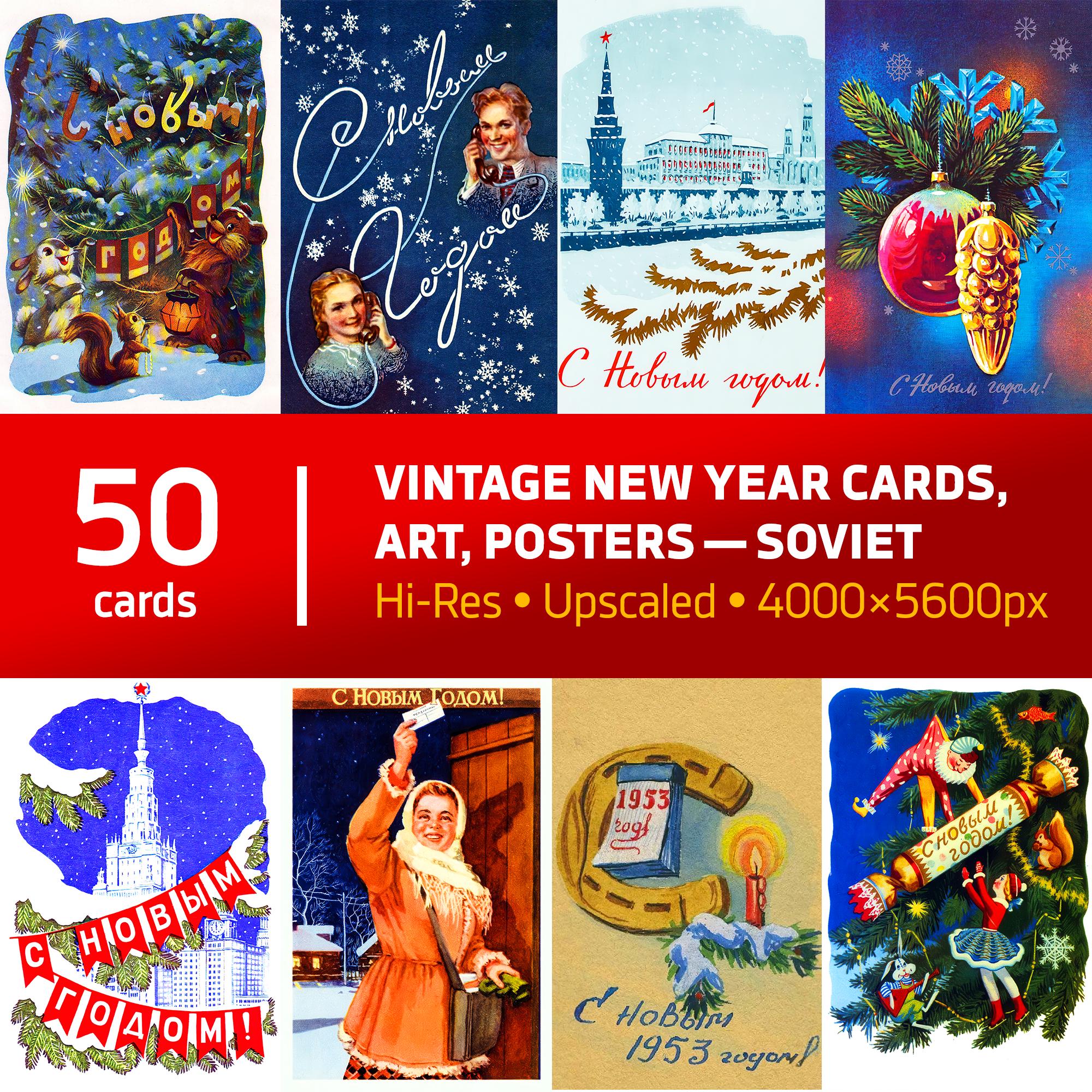 Vintage Soviet New Year cards: Digital Download – 100 Retro Holiday Cards from USSR, Hi-Res 2026 Printable Xmas Art Bundle ⛔ HQ-quality. No AI.
