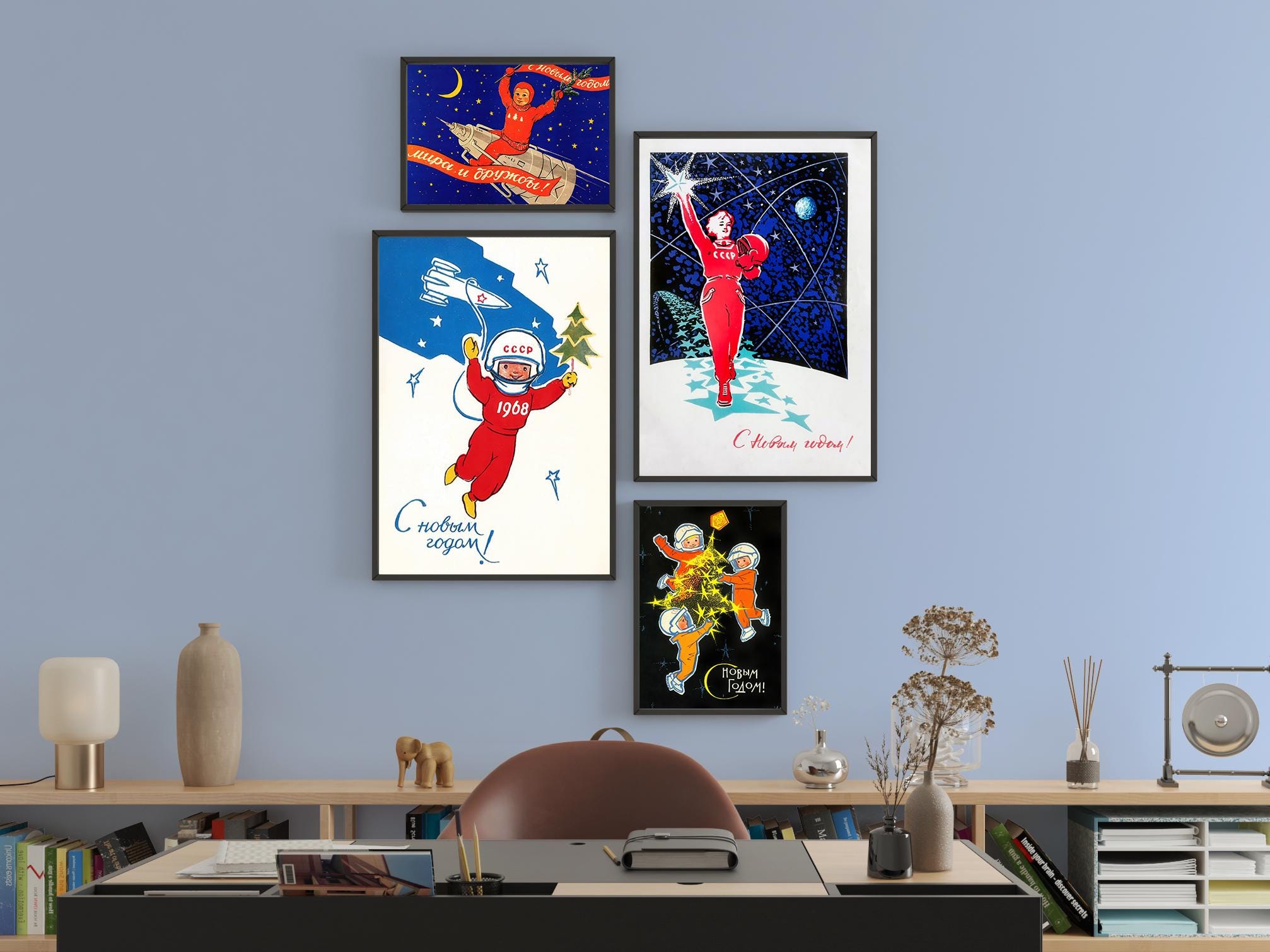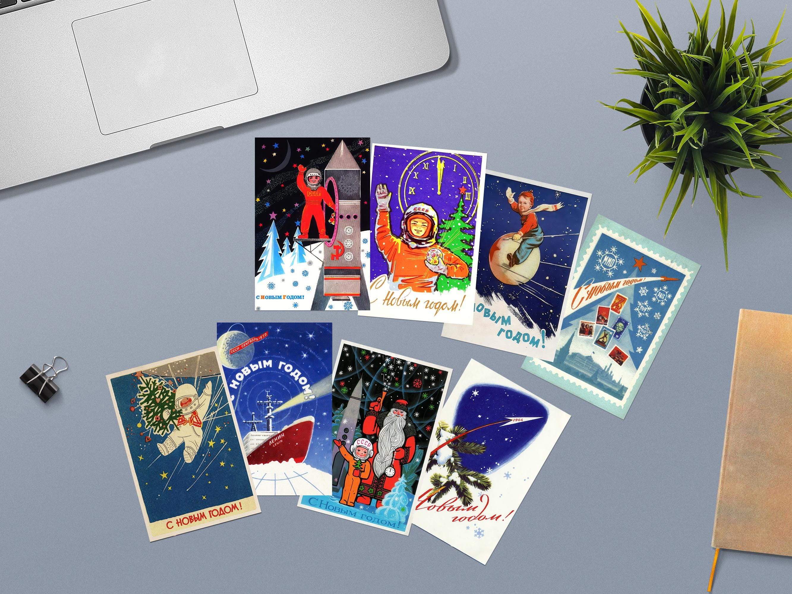 Vintage Soviet space New Year cards: Digital Download – 50 Retro Holiday Cards from USSR 1950s-1960s, Hi-Res 2026 Printable Xmas Art Bundle ⛔ HQ-quality. No AI.
