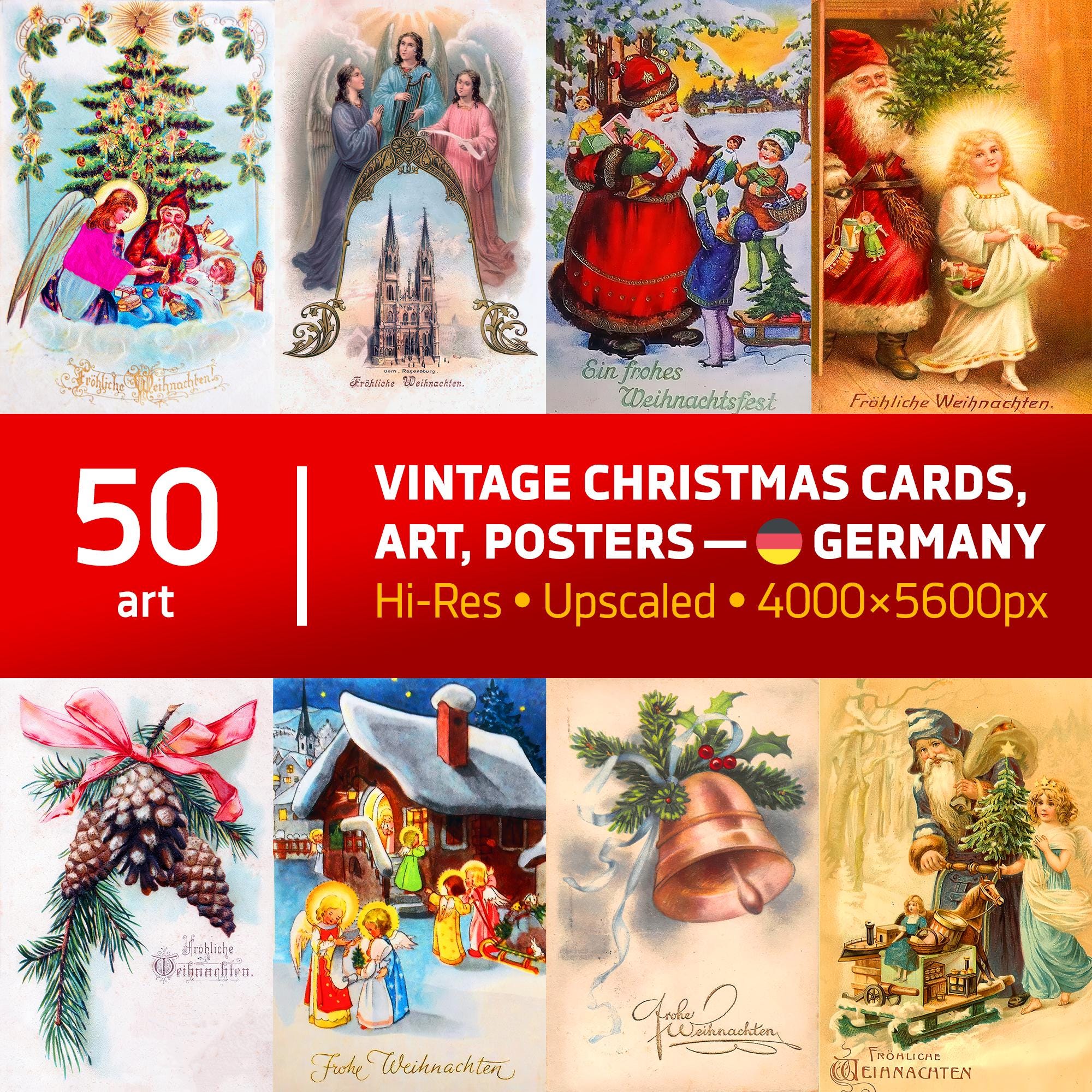 Vintage Germany Christmas Cards Digital Download – 50 Retro Holiday Cards from Germany | Weihnachten & Weihnachtskarten Xmas 2026 Bundle ⛔ HQ-quality. No AI.
