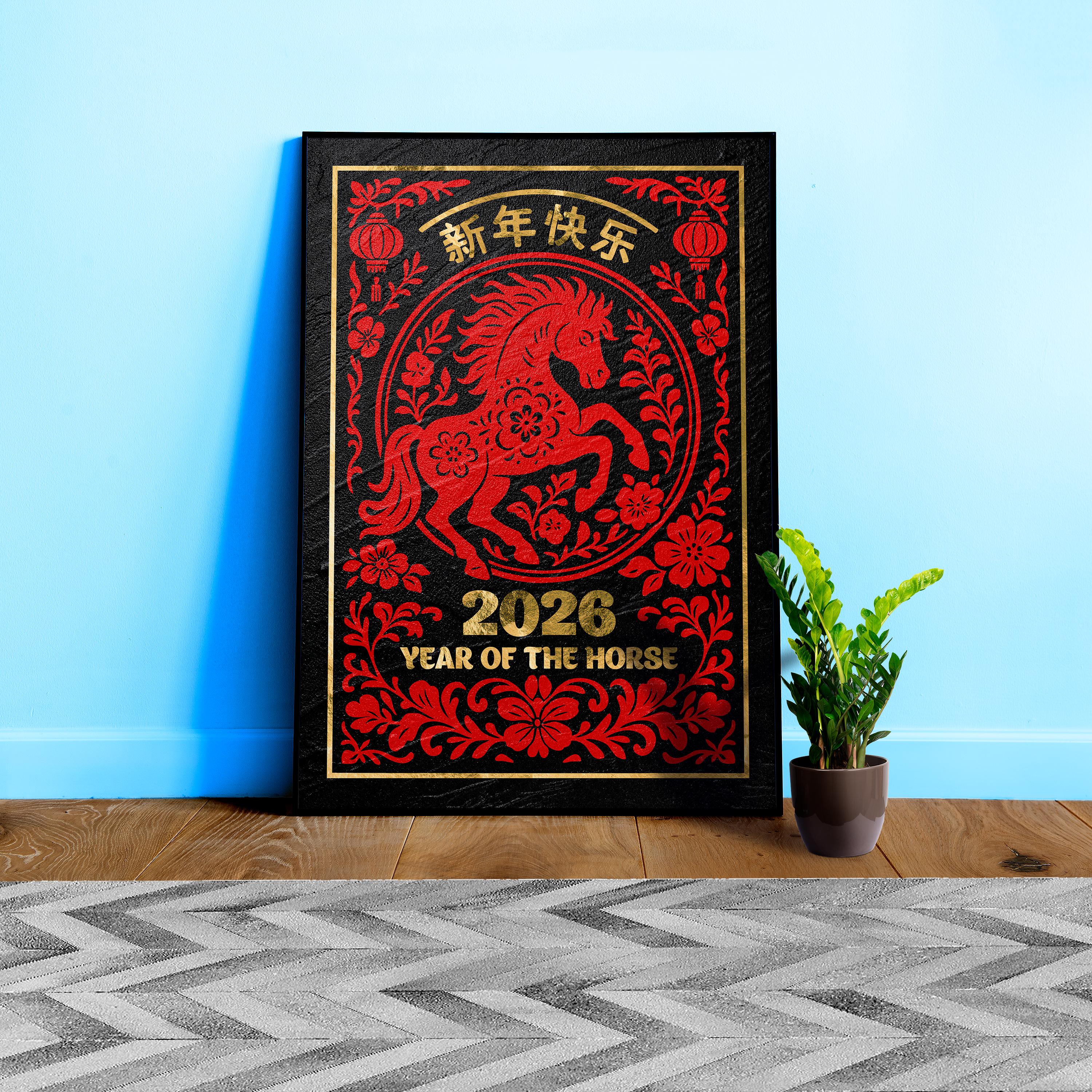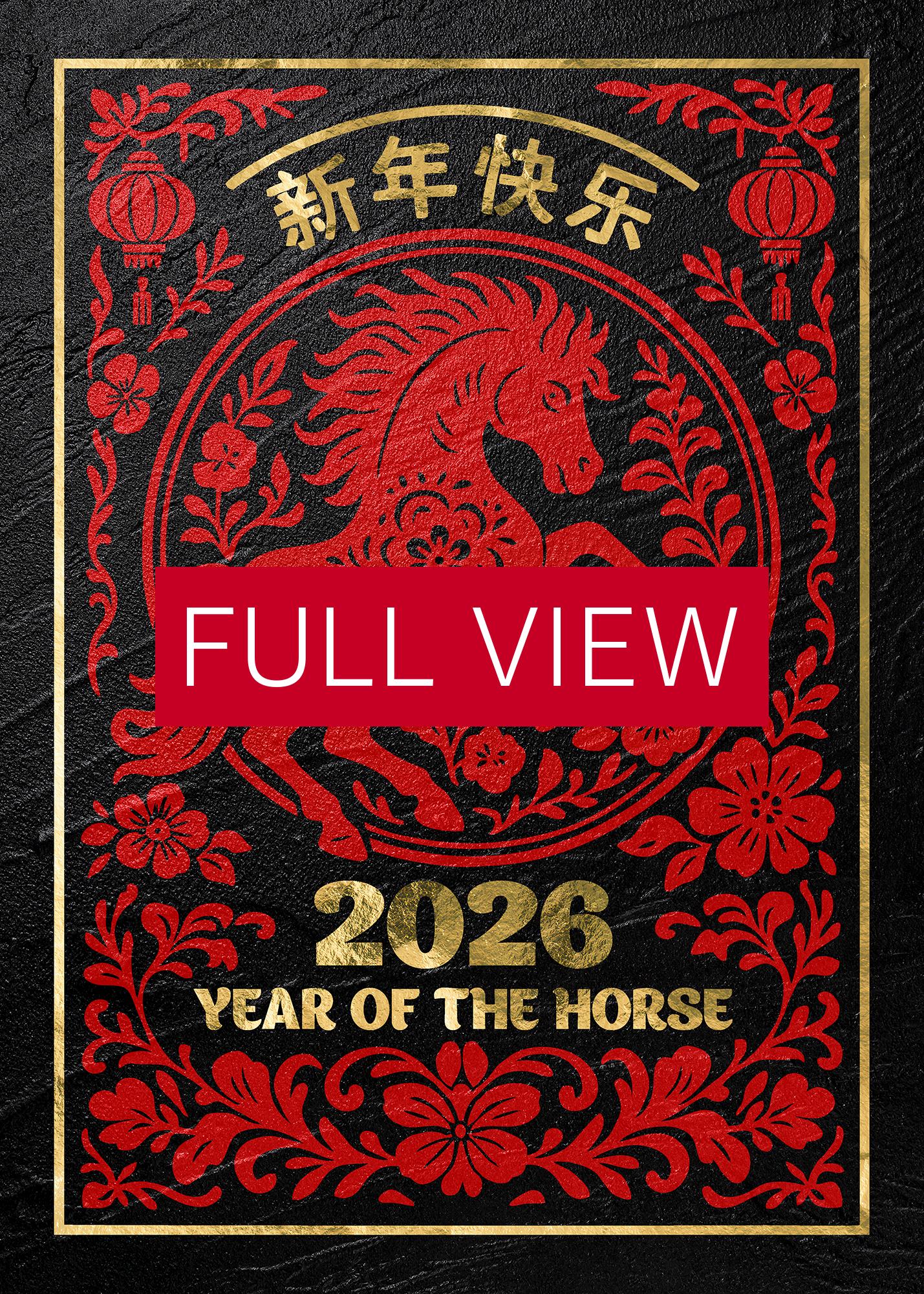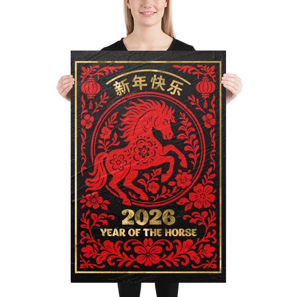 Chinese Lunar New Year 2026 Horse Poster – Gold on Black Granite. Year of the Horse wall decor, Lunar New Year print ⛔ HQ-quality