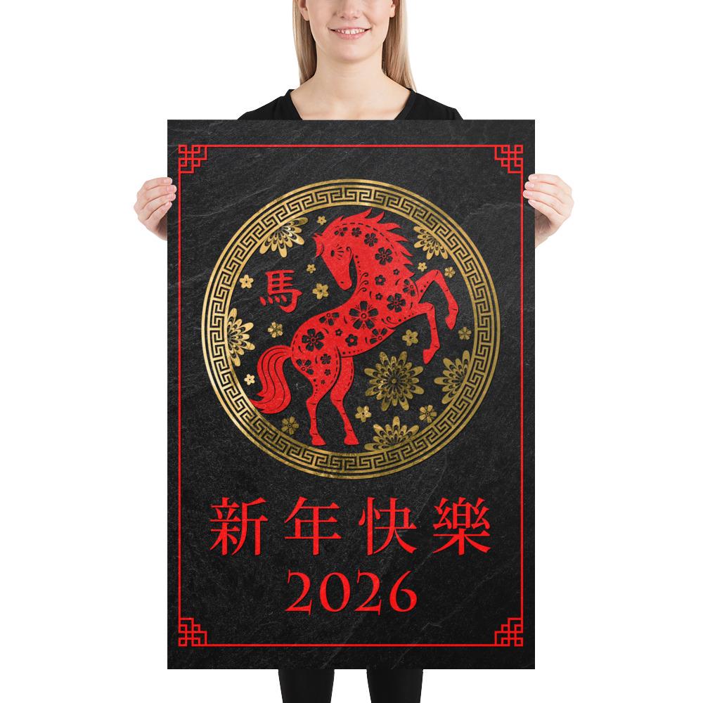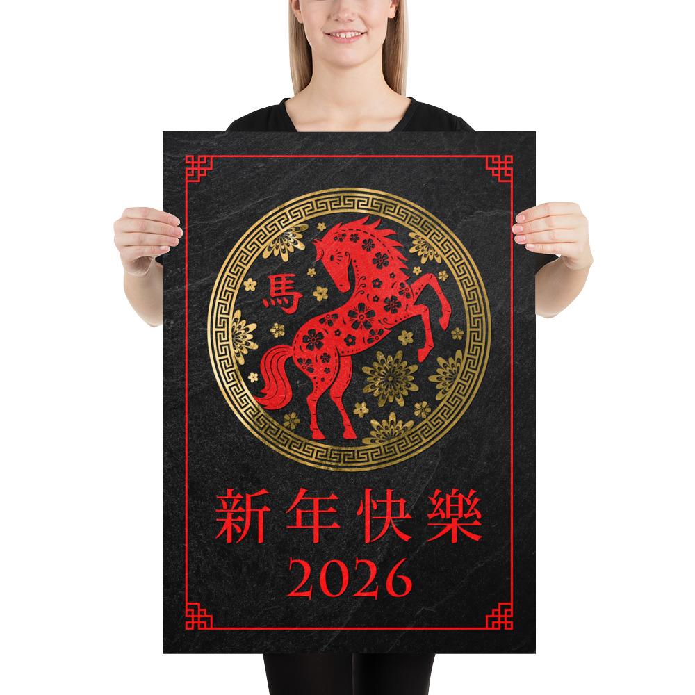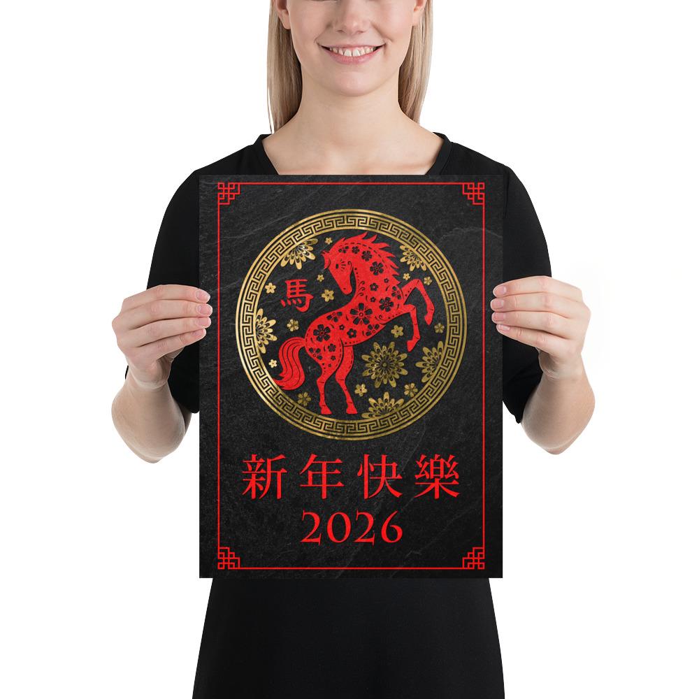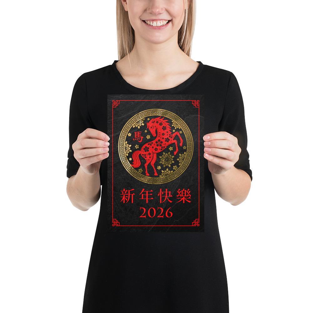 🎉 Bring prosperity and bold festive style into your home with this premium Chinese Lunar New Year 2026 – Year of the Horse poster crafted in striking gold on black granite. The artwork blends traditional Chinese symbolism with elegant modern design, making it a standout piece for Lunar New Year decor or a meaningful gift for loved ones. Part of a 4-poster collection, each print showcases refined golden details that honor the spirit, strength, and good fortune of the Horse year.