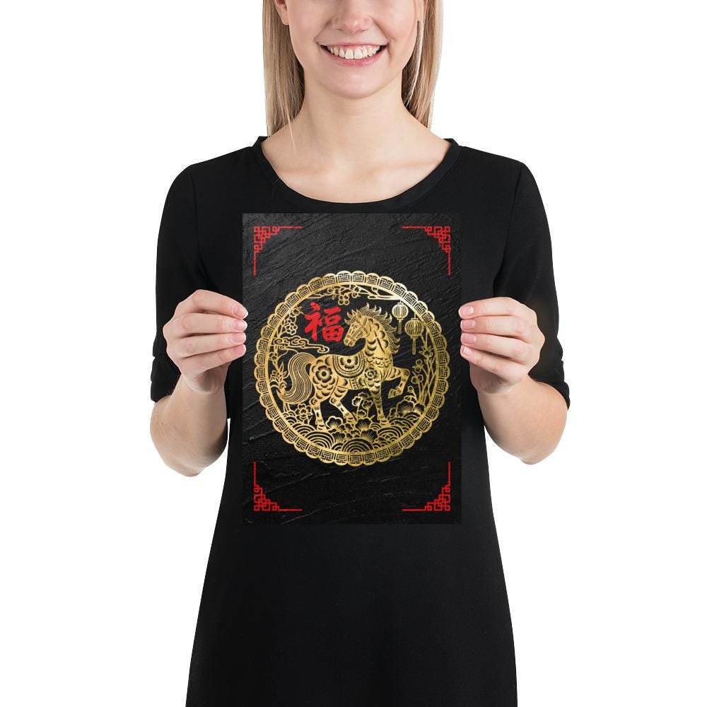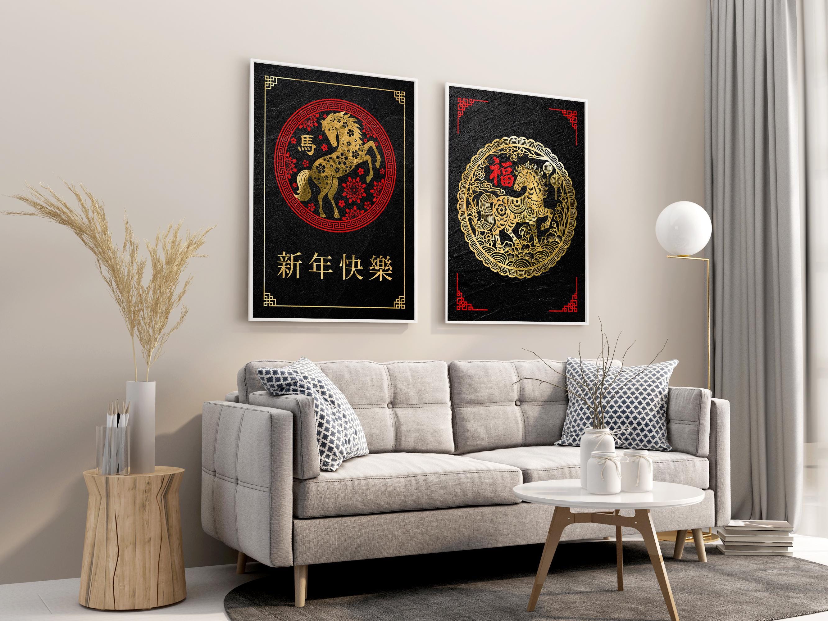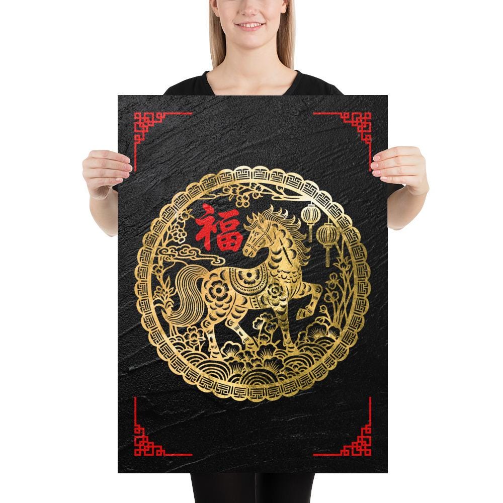 🎉 Bring prosperity and bold festive style into your home with this premium Chinese Lunar New Year 2026 – Year of the Horse poster crafted in striking gold on black granite. The artwork blends traditional Chinese symbolism with elegant modern design, making it a standout piece for Lunar New Year decor or a meaningful gift for loved ones. Part of a 4-poster collection, each print showcases refined golden details that honor the spirit, strength, and good fortune of the Horse year.