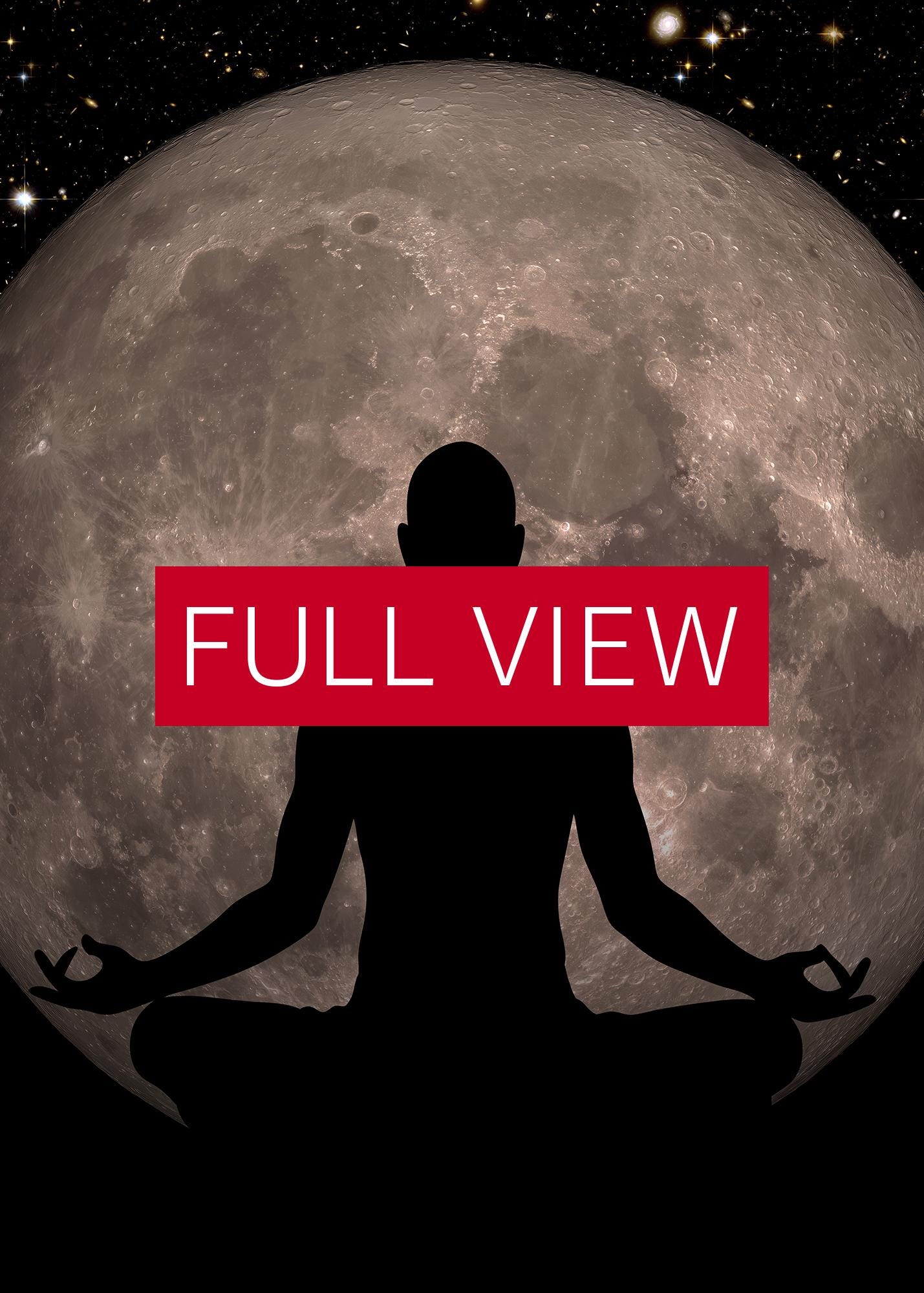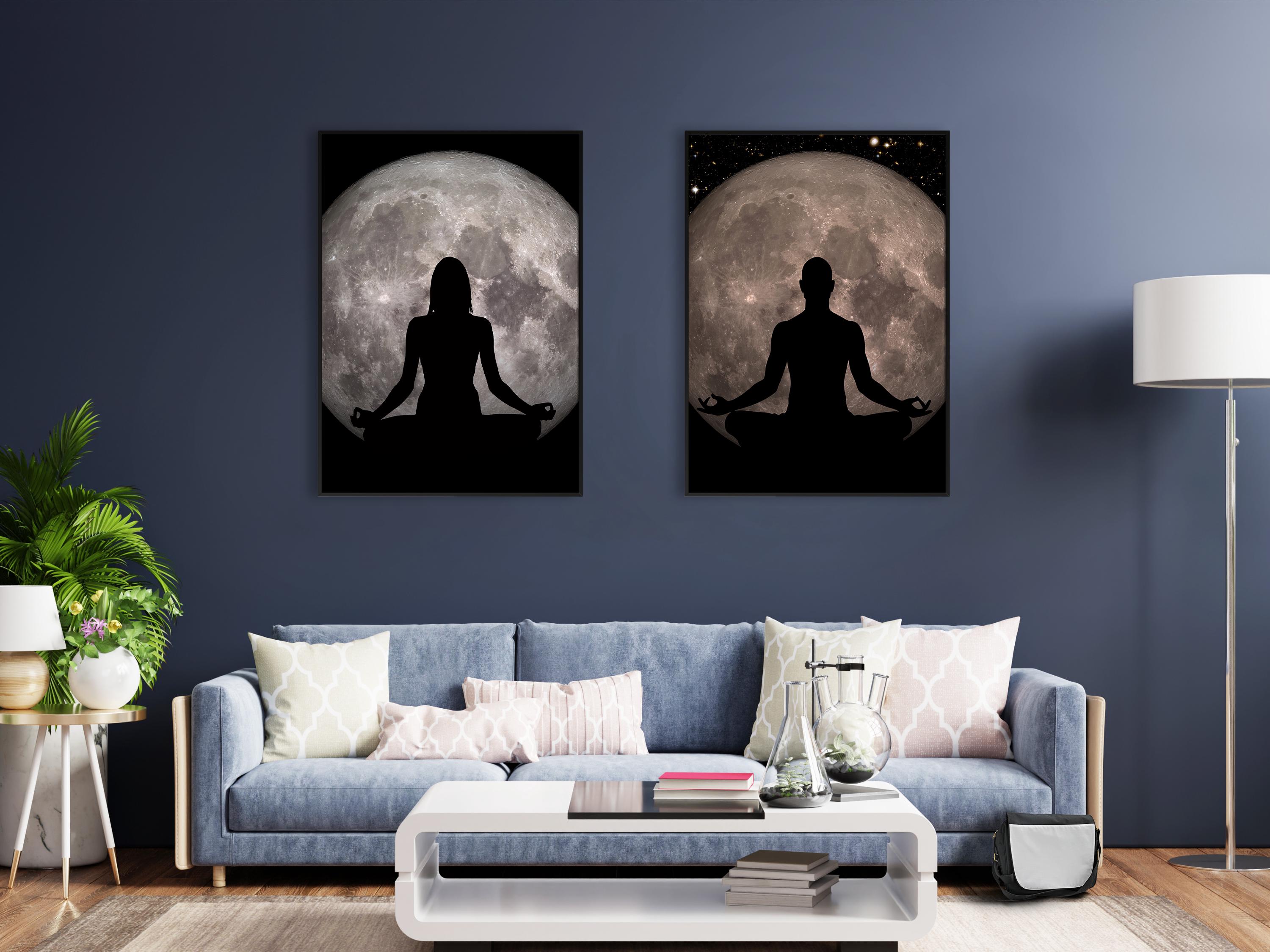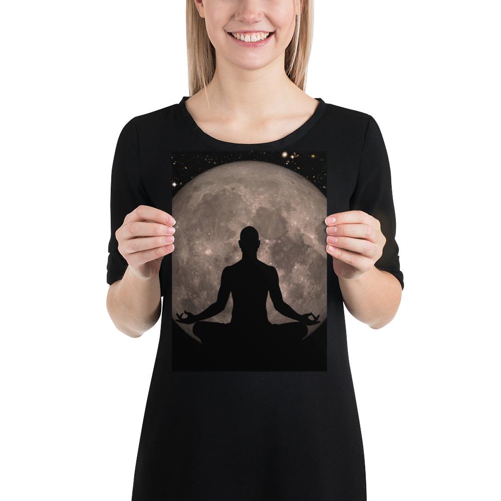 Full Moon Meditation Poster – Man Silhouette in Lotus Pose with Full Moon. Cosmos and Universe black art print, Yoga decor ⛔ HQ-quality.