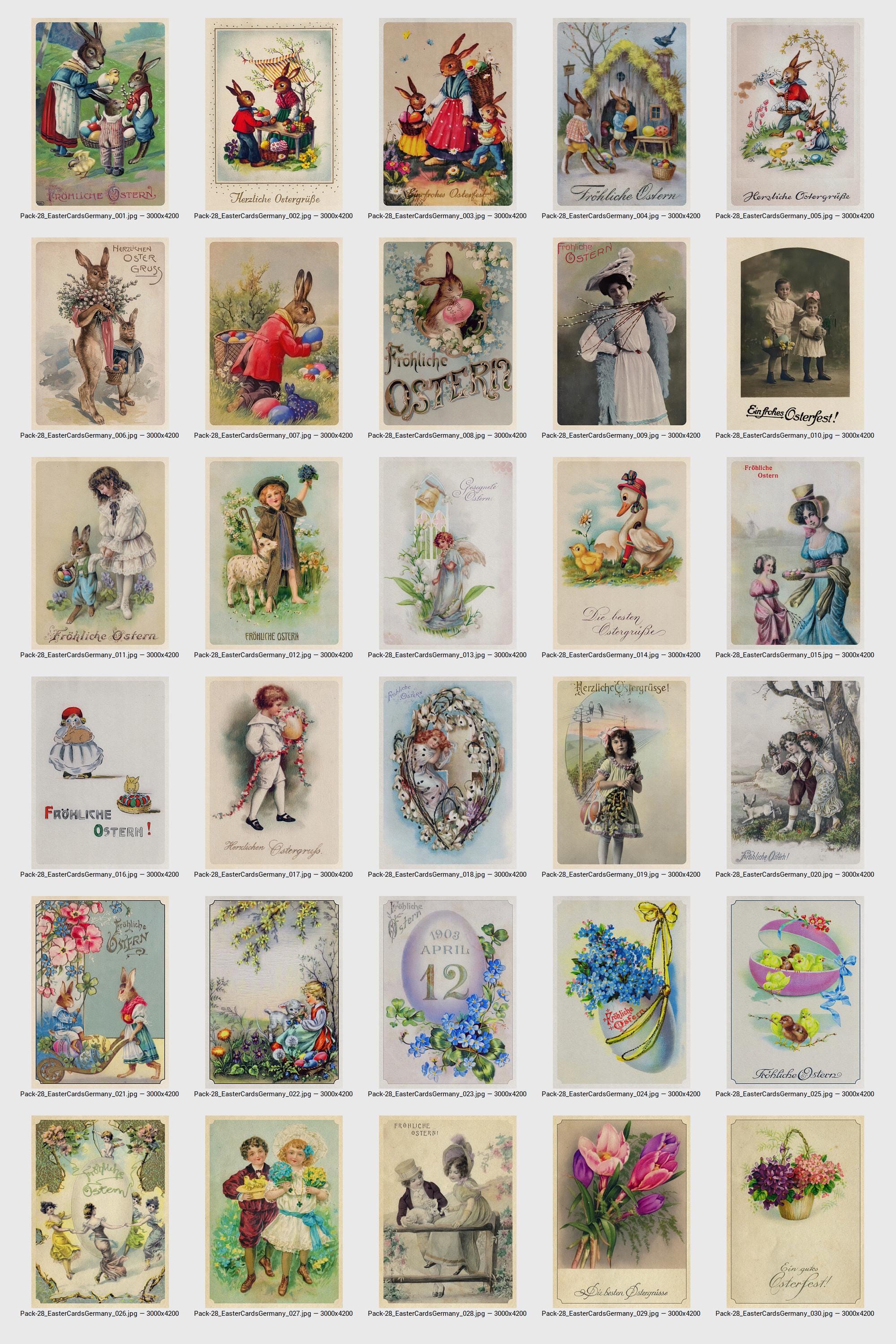 Vintage Easter Germany postcards – Retro Easter Postcards & Art Prints 1910s, Victorian Digital Download Collection for scrapbooking ⛔ HQ-quality. No AI.