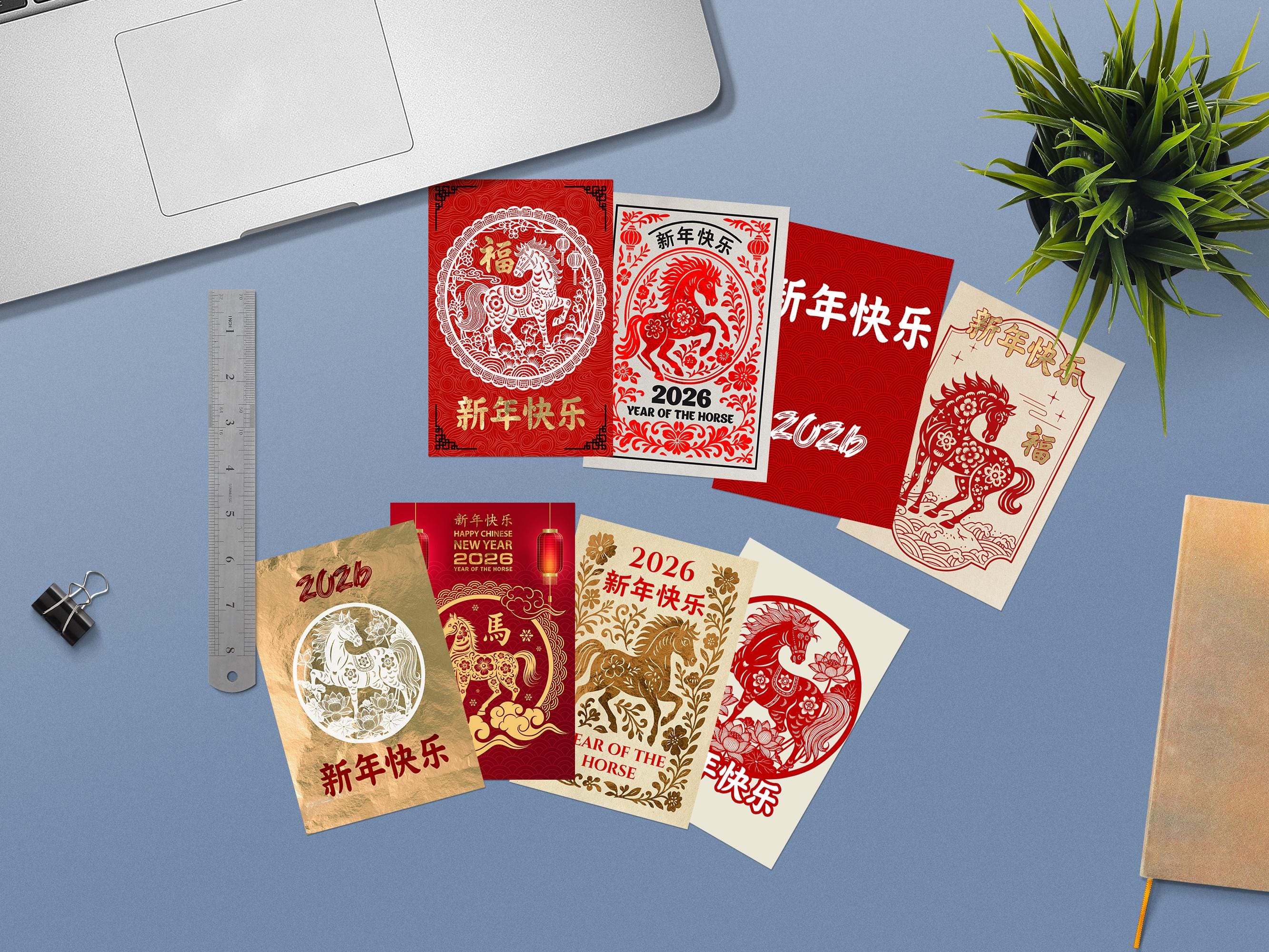 Chinese New Year 2026 cards – Digital Download Lunar New Year 2026 Year of the Horse Art, Posters Printable Cards, Chinese Zodiac Decor ⛔ HQ-quality. No AI.