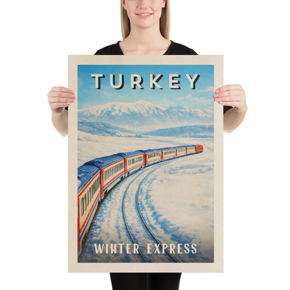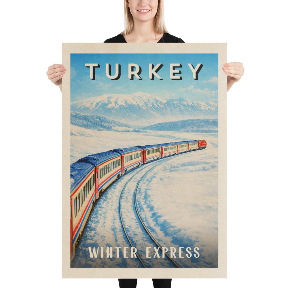 Turkey Winter Express poster – Vintage Travel Print, Snow Train Landscape Wall Art, Retro Turkey Travel Decor ⛔ HQ-quality.