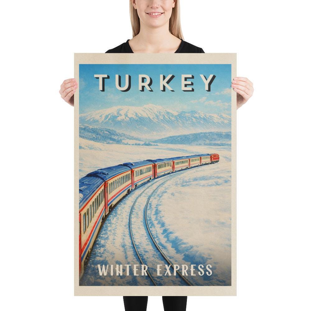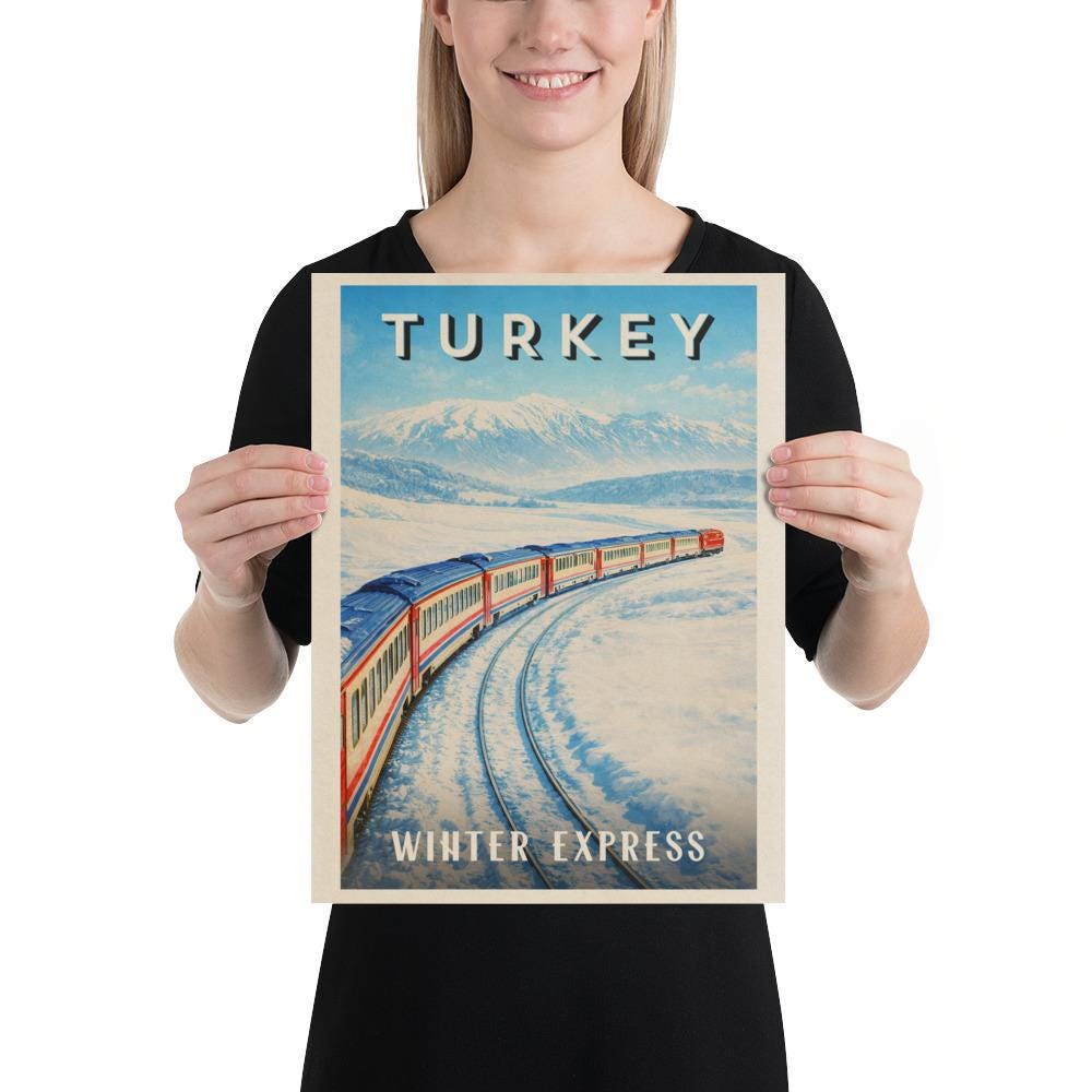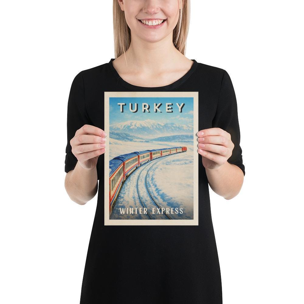 ❄️ This Turkey Winter Express poster is designed in a Vintage Travel Print style and captures the atmosphere of a winter journey across snowy landscapes, making it a striking Turkey Poster for any interior. The artistic Snow Train composition set against majestic mountains creates a dramatic Winter Landscape, perfect as Travel Wall Art and Retro Travel Decor for home or office. This Turkey Travel Print works beautifully as a stylish Wall Art Poster and enhances modern Home Decor with classic vintage travel charm.