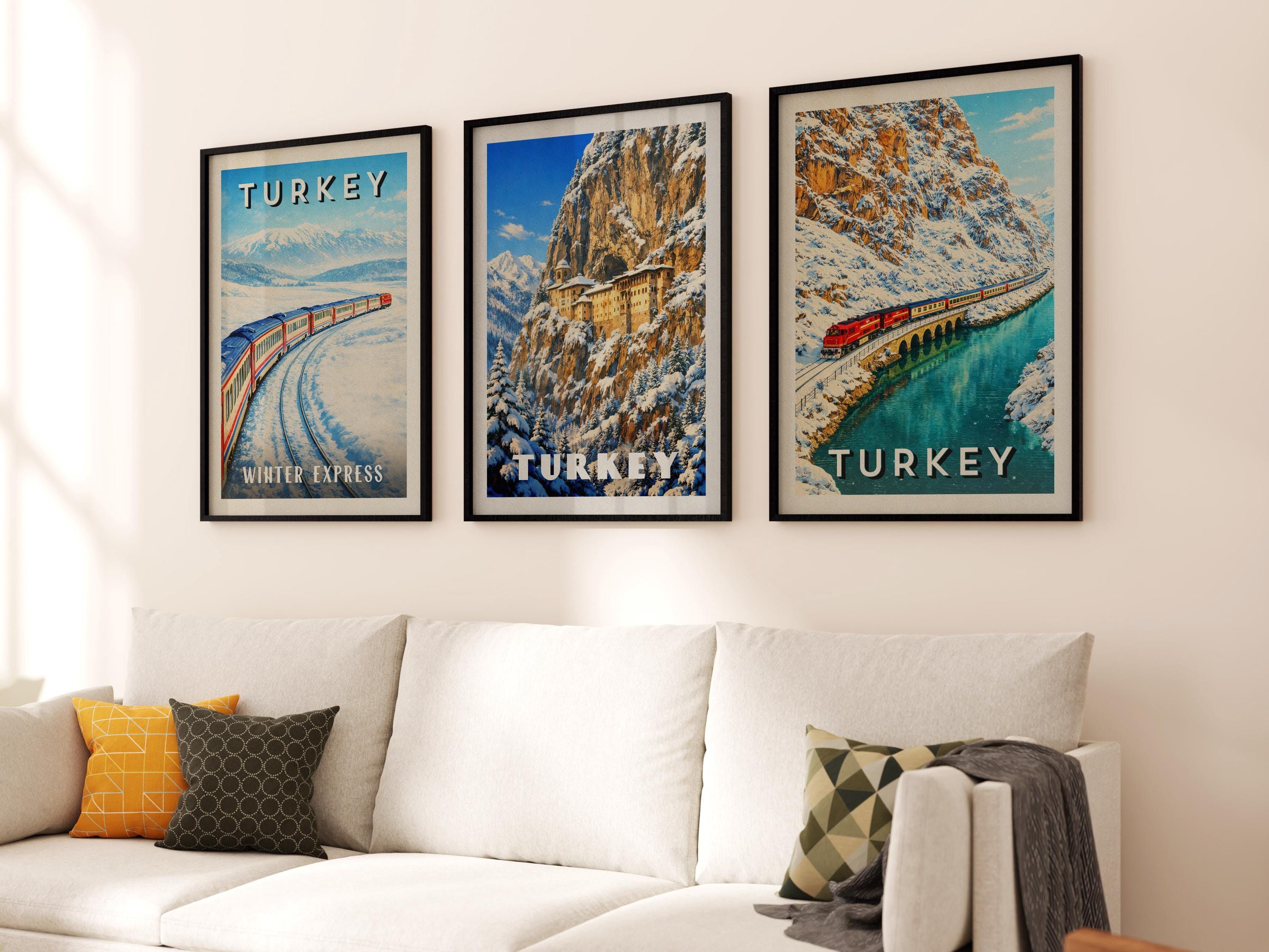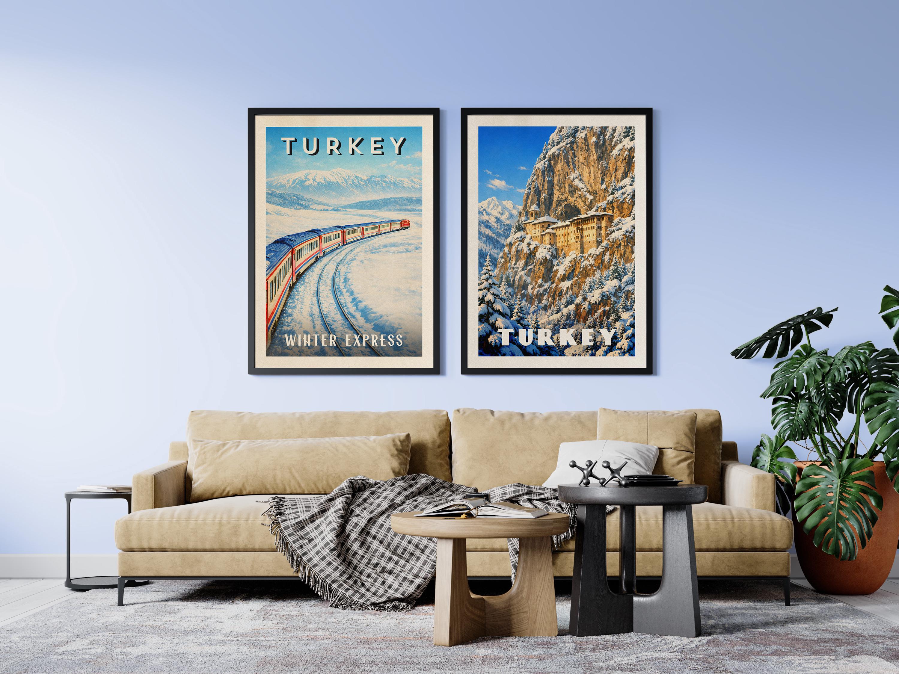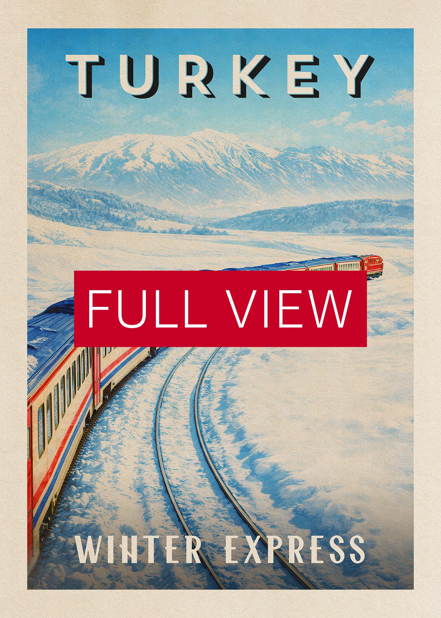 ❄️ This Turkey Winter Express poster is designed in a Vintage Travel Print style and captures the atmosphere of a winter journey across snowy landscapes, making it a striking Turkey Poster for any interior. The artistic Snow Train composition set against majestic mountains creates a dramatic Winter Landscape, perfect as Travel Wall Art and Retro Travel Decor for home or office. This Turkey Travel Print works beautifully as a stylish Wall Art Poster and enhances modern Home Decor with classic vintage travel charm.