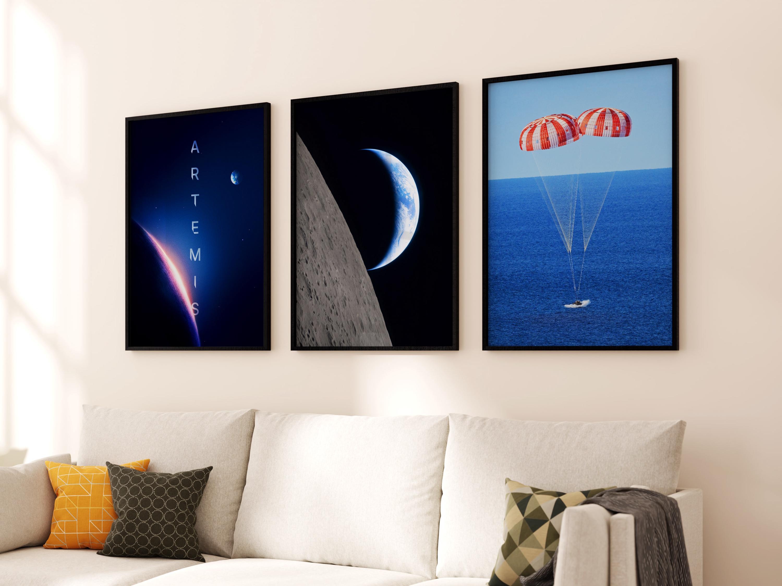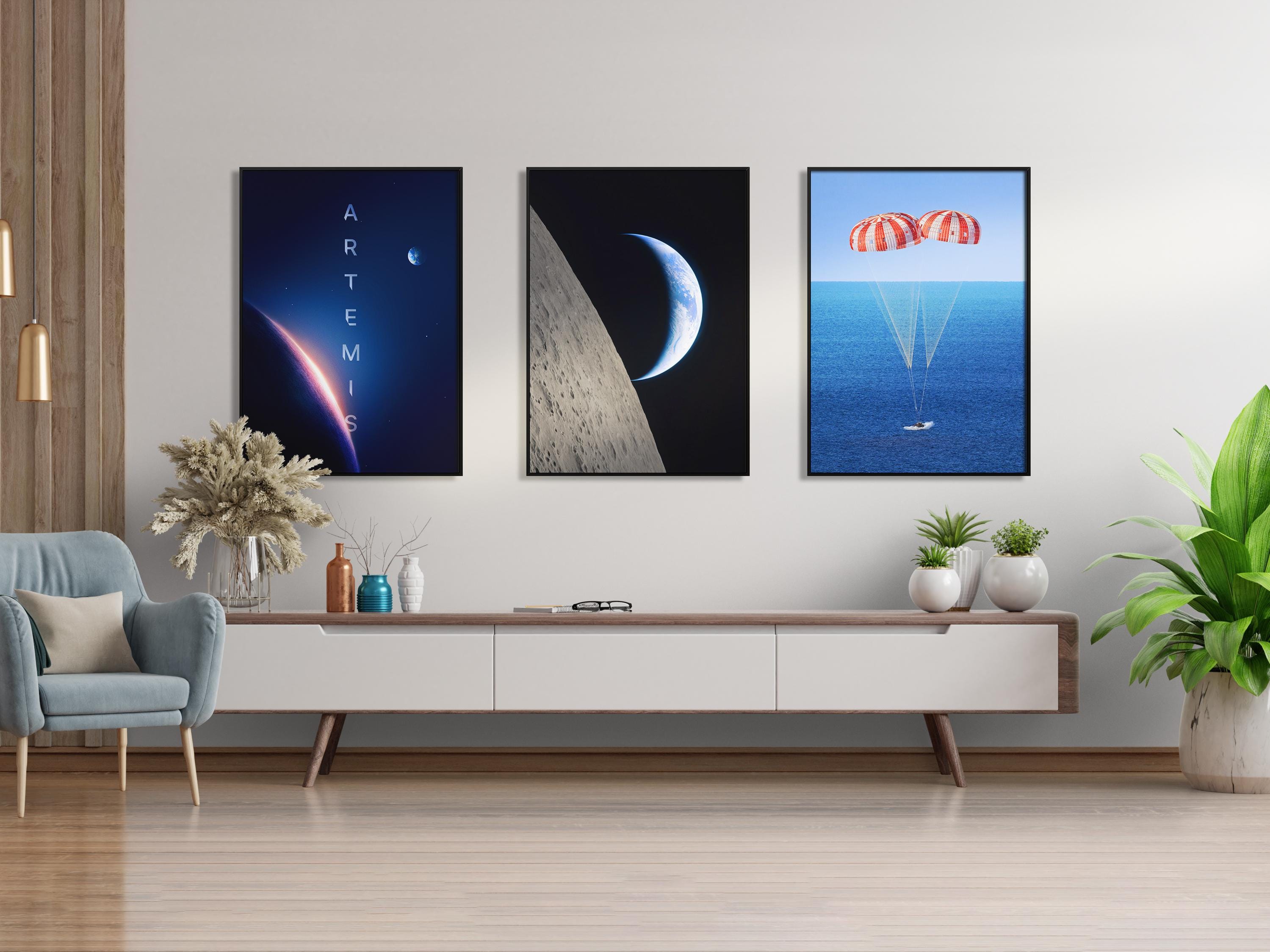 🌕 This NASA Artemis II Lunar Flyby poster showcases a stunning Earthset rising above the Moon’s surface, echoing the legendary Pale Blue Dot view of our planet. Designed as a highly detailed space photo poster, it honors the groundbreaking NASA Artemis 2 mission (April 1–10, 2026) and symbolizes humanity’s return to deep space exploration. Ideal as a NASA Poster, Moon Mission artwork, or stylish Space Wall Art, this piece adds a powerful cosmic atmosphere to any home, office, or creative space.