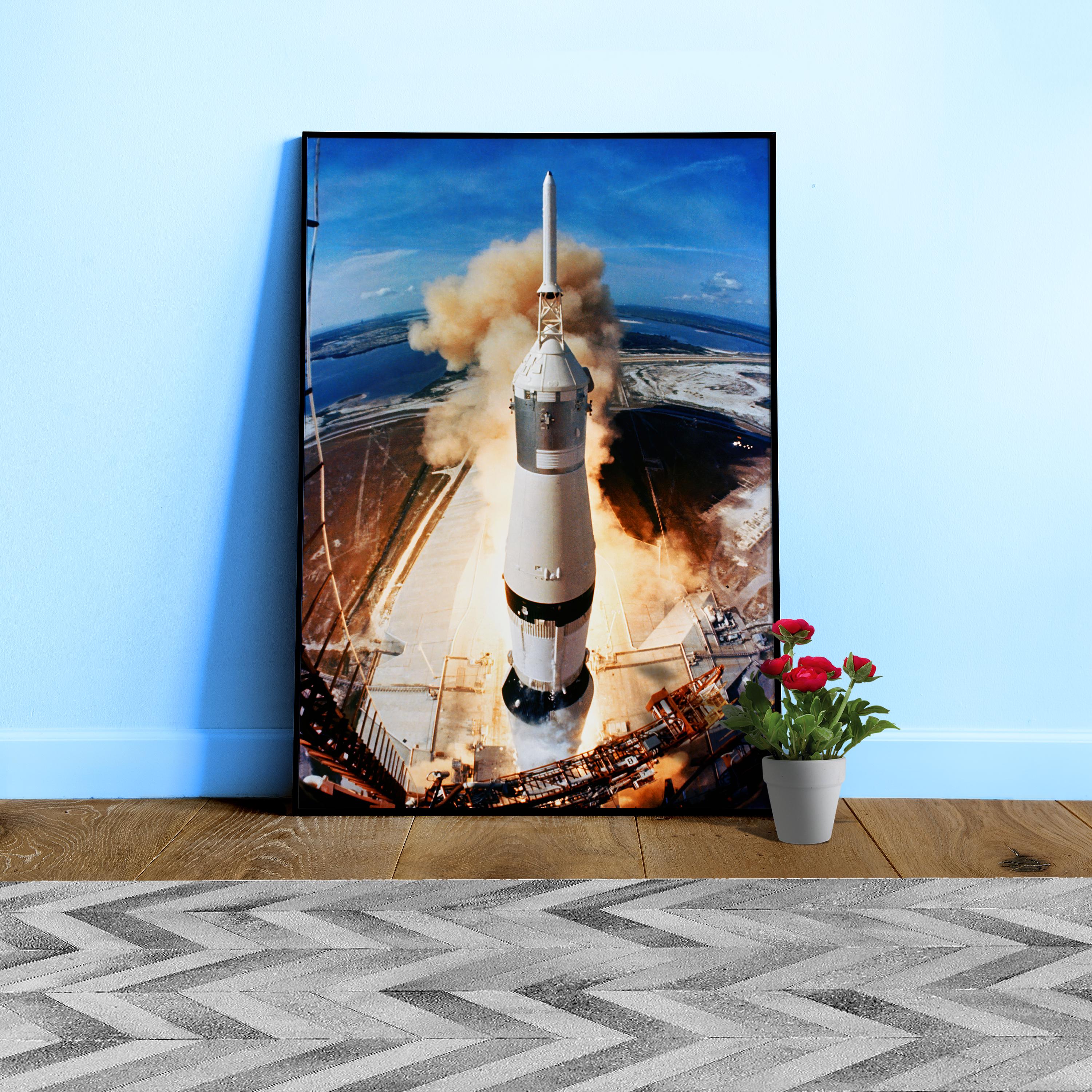 Witness the historic moment that changed the world forever with this high-resolution poster of the Apollo 11 rocket launching towards the moon in 1969. A must-have for any space enthusiast or history buff.