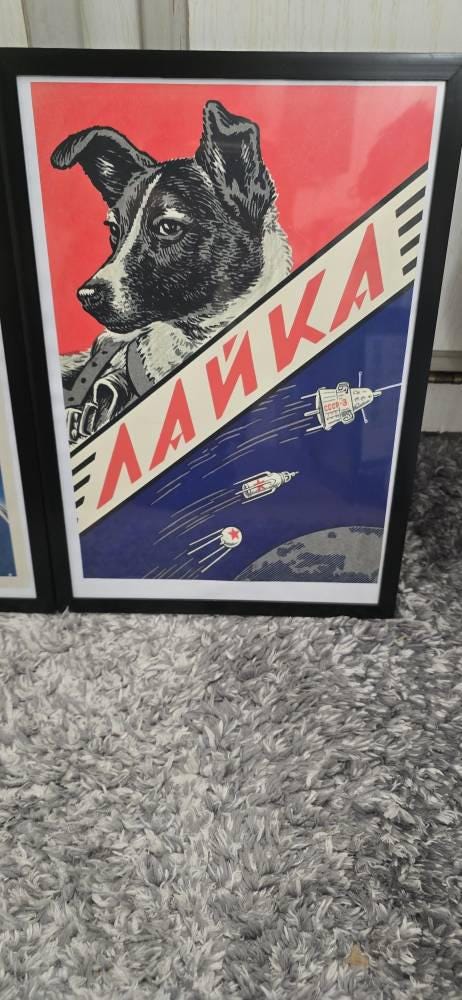 🚀 If you like the heroic Laika, you will also like the first cat in space Felicette — https://retropostershopprint.etsy.com/listing/1624107719/felicette-first-cat-in-space-france-1963 and the chimpanzee Ham — https://retropostershopprint.etsy.com/listing/1624109505/ham-first-chimp-in-space-usa-1961